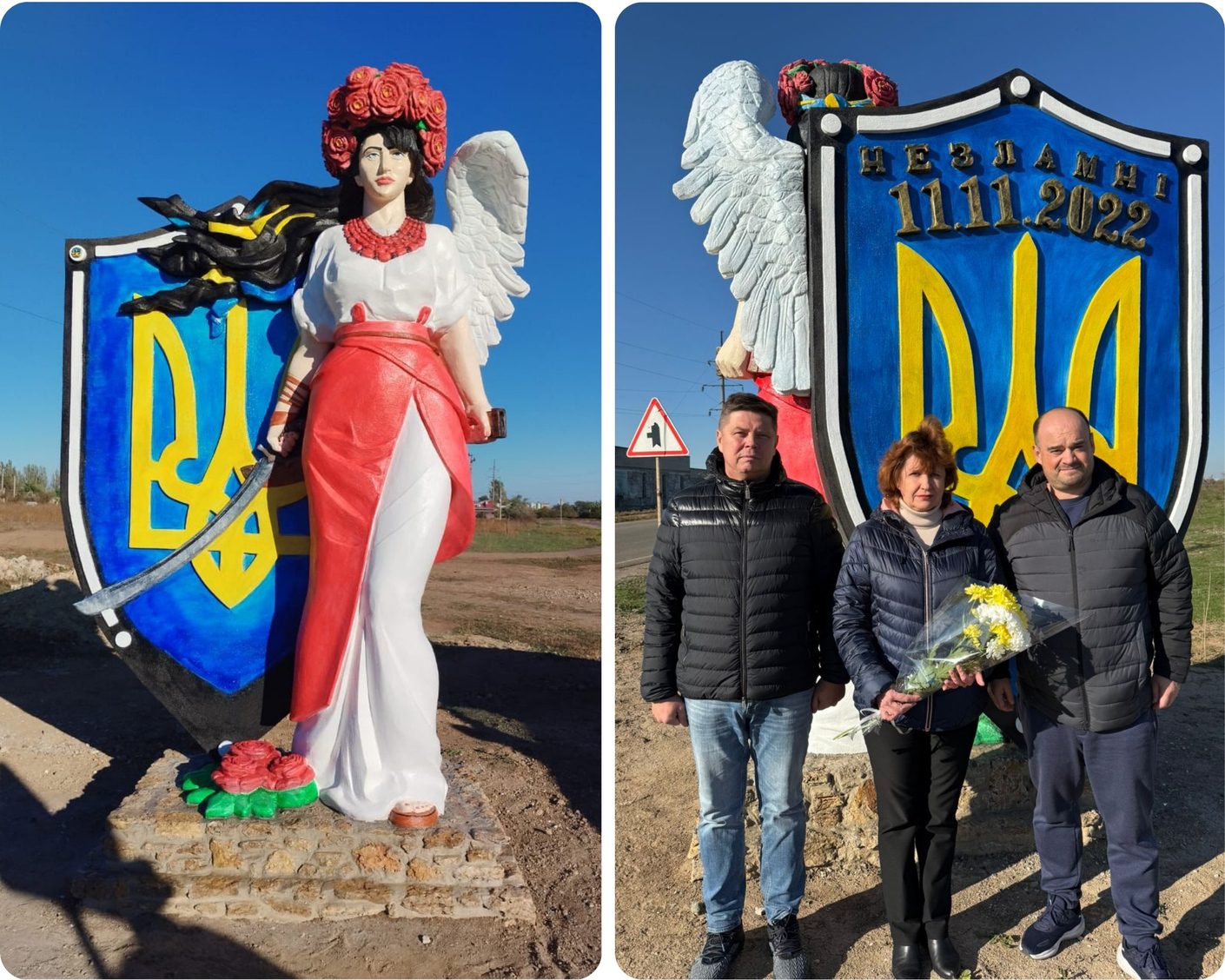 Скульптура, встановлена до другої річниці визволення громади на вʼїзді до Білозерки зі Станіславського шосе