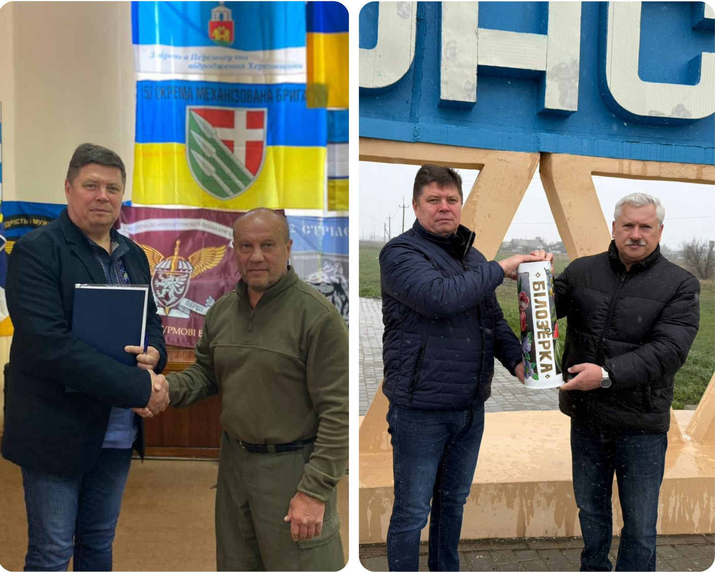 Голова Чопської громади, партнера Білозерської громади за проєктом «Пліч-о-Пліч», Валерій Самардак (праворуч) та Ігор Острівний (фото зліва). Голова Лубенської громади, партнера Білозерської громади за проєктом «Пліч-о-Пліч», Олександр Грицаєнко (праворуч) та Ігор Острівний (фото справа)