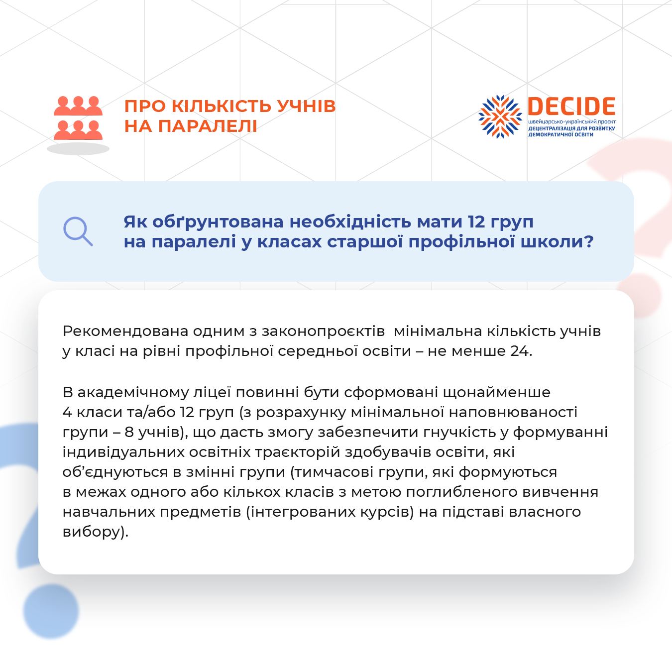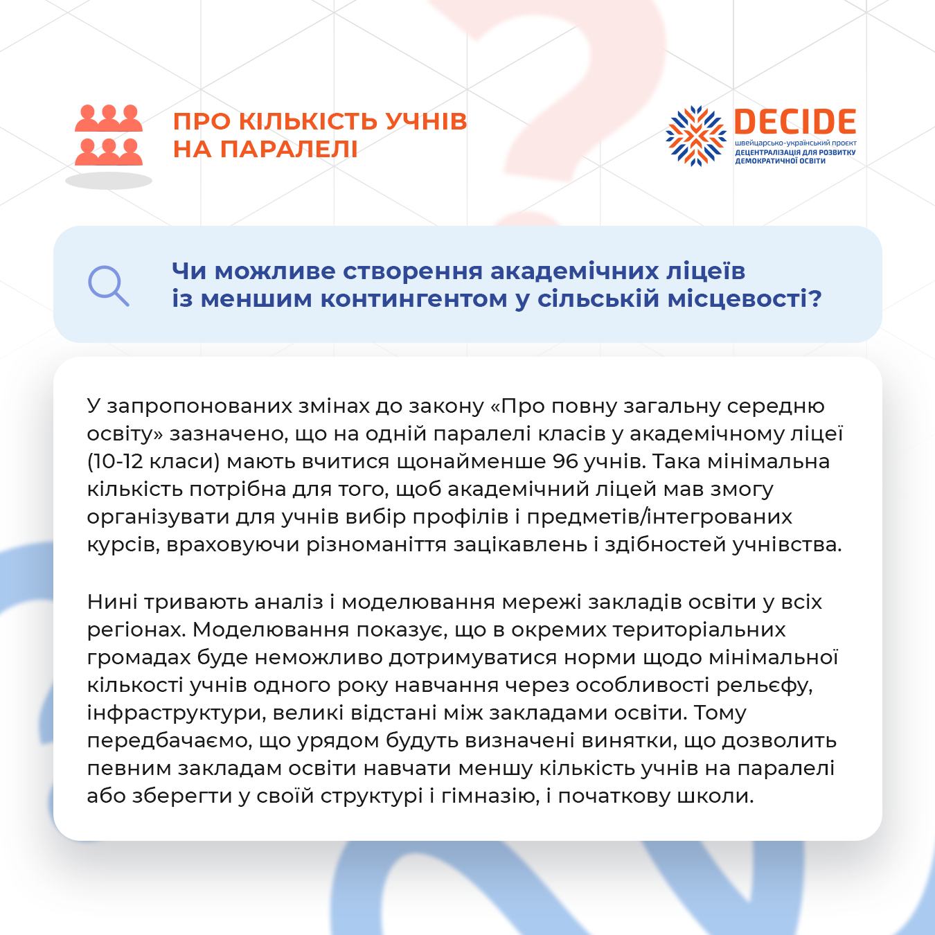 Експерти Швейцарсько-українського проєкту DECIDE відповіли на поширені запитання про реформу старшої профільної школи.
