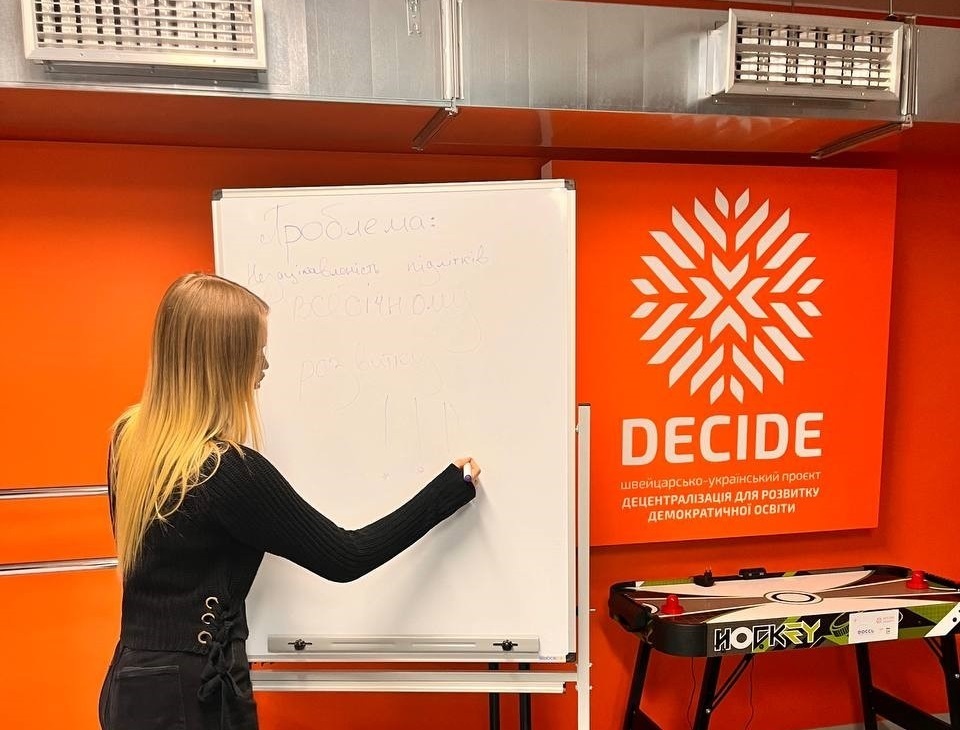 Софія Гришай, учениця 9 класу і президентка школи, пригадує: коли почула про пропозицію пройти навчання від DECIDE, поставилася до цього легковажно. Мовляв, що не зробиш, аби прогуляти уроки. Згодом усе змінилося.