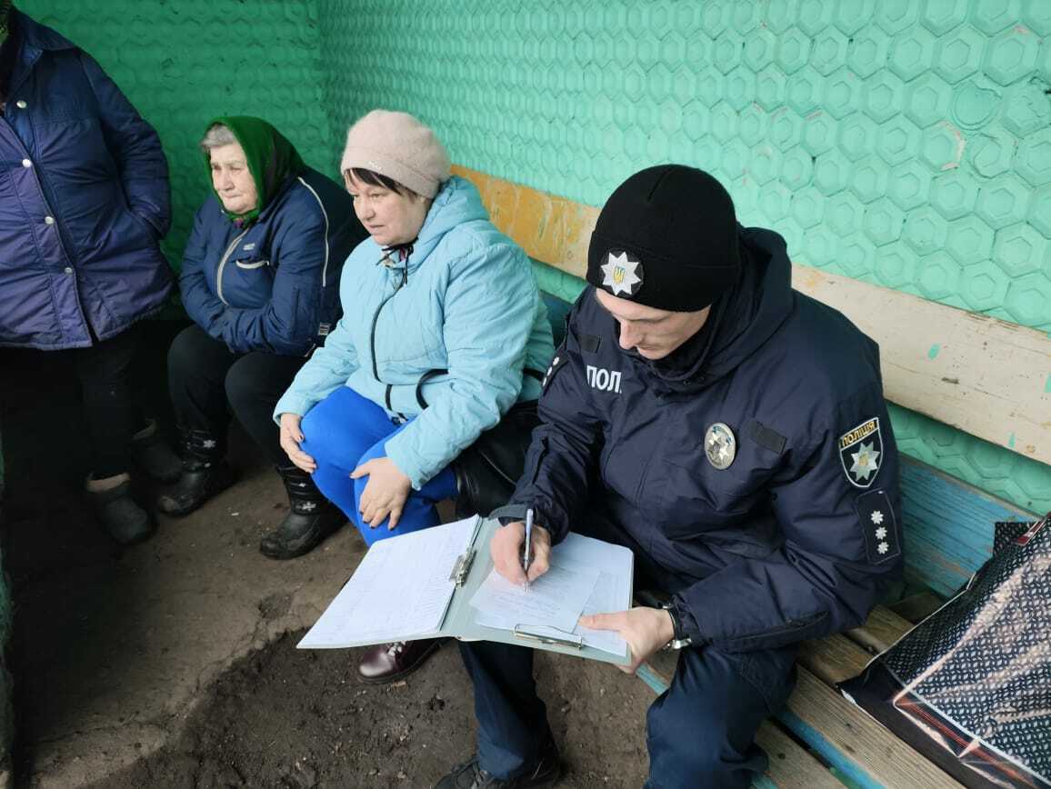 Олена Сіма розмовляє з мешканцями Юнаківської громади щодо необхідності евакуації. Лютий цього року
