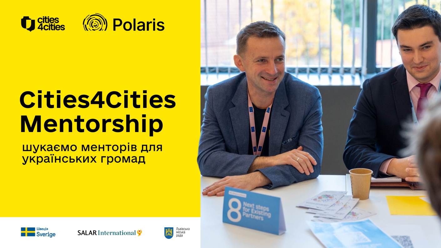 Ініціатива Cities4Cities, яка реалізовує напрям «Міжнародна муніципальна співпраця» Програми Polaris «Підтримка багаторівневого врядування в Україні», розпочинає відбір менторів і менторок, які зможуть долучитися до підтримки українських громад у сфері міжнародної співпраці.