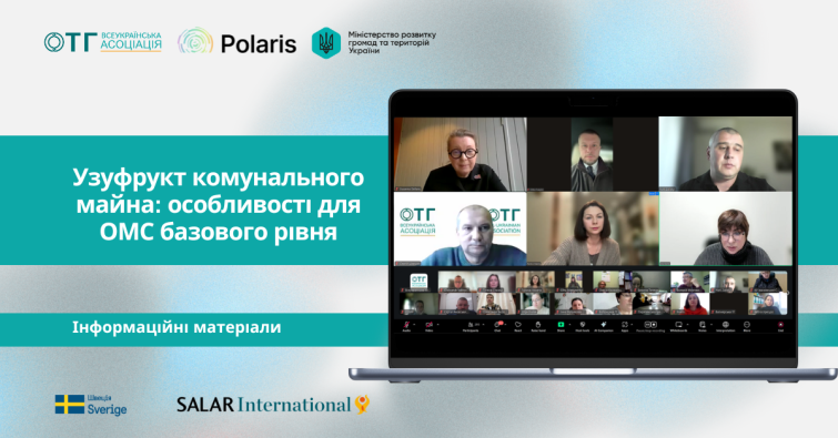 11 листопада 2025 року відбувся вебінар на тему «Узуфрукт комунального майна: особливості для ОМС базового рівня», організований Всеукраїнською асоціацією об’єднаних територіальних громад спільно з Міністерством розвитку громад та територій України у партнерстві з Програмою Polaris «Підтримка багаторівневого врядування в Україні». Захід об’єднав понад 650 представників і представниць територіальних громад з усіх регіонів України.