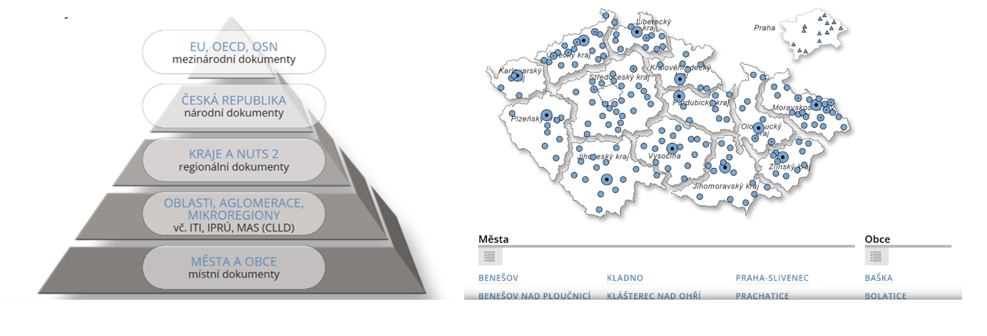 Портал містить відсилку до ще одного цікавого для нас рішення – порталу стратегічних документів в Чеські Республіці, який теж підтримується цією робочою групою. Цей портал - це загальнонаціональна інформаційна база стратегічних документів, яка включає усі рівні актуальних (і частково архівних) стратегічних документів – від над- і загальнонаціональних (в тому числі усі секторальних по кожному Міністерству) до локальних  з доступом до них за списком, а де можливо – через мапу (малюнок 4).