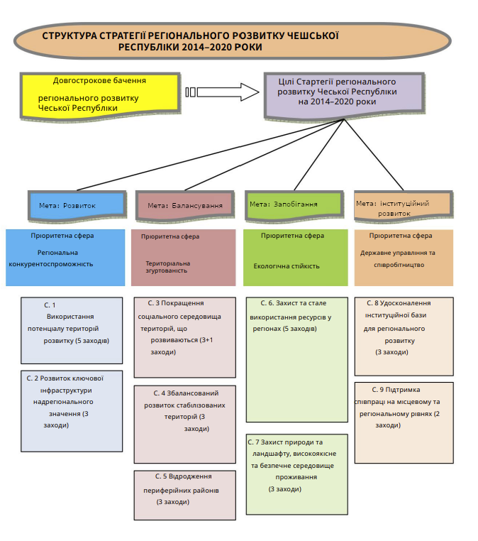При цьому в Чехії немає окремого закону про стратегічне планування, але натомість є ціла низка корисних інструментів, які використовуються в цьому процесі.