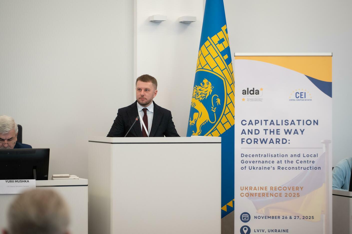 Форум, організований  Європейською асоціацією місцевої демократії (ALDA) та Центральноєвропейською Ініціативою, присвячений  підсумкам Конференції з відновлення України 2025, яка відбулася у Римі, та підготовці наступних кроків до URC 2026, посиленню міжнародного співробітництва громад та муніципалітетів. Захід пройшов за участі генерального секретаря ALDA Антонелли Вальморбіди, заступника генерального секретаря Центральноєвропейської ініціативи Юрія Мушки, представників робочої групи Європейського Комітету Регіонів з питань України,  представників українських громад та європейських муніципалітетів, всеукраїнських асоціацій органів місцевого самоврядування,  а також партнерів з CEMR та U-LEAD.