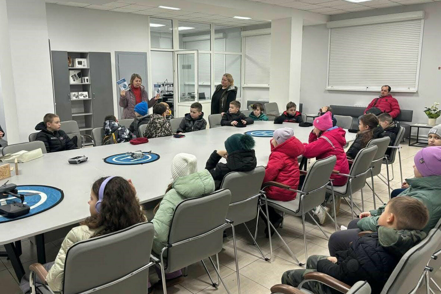 Діти на екскурсії в навчально-практичному центрі з навчання виробництва та керування цивільними дронами