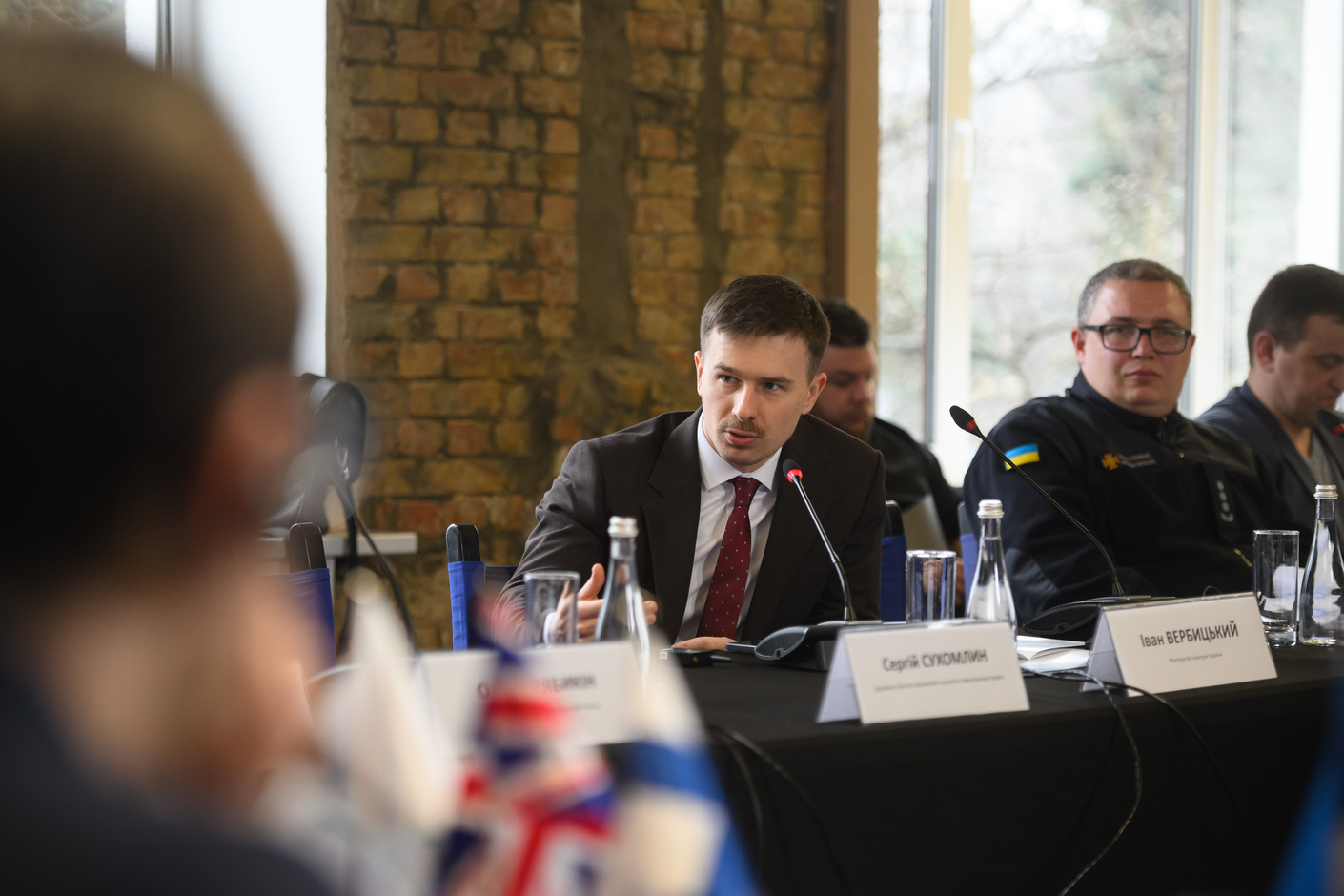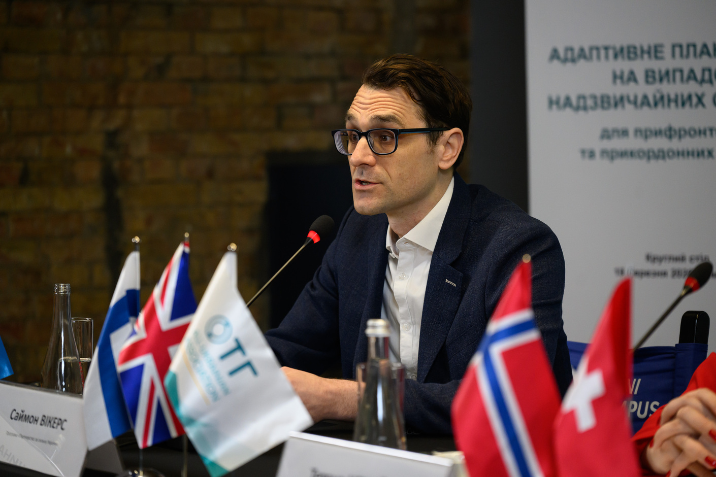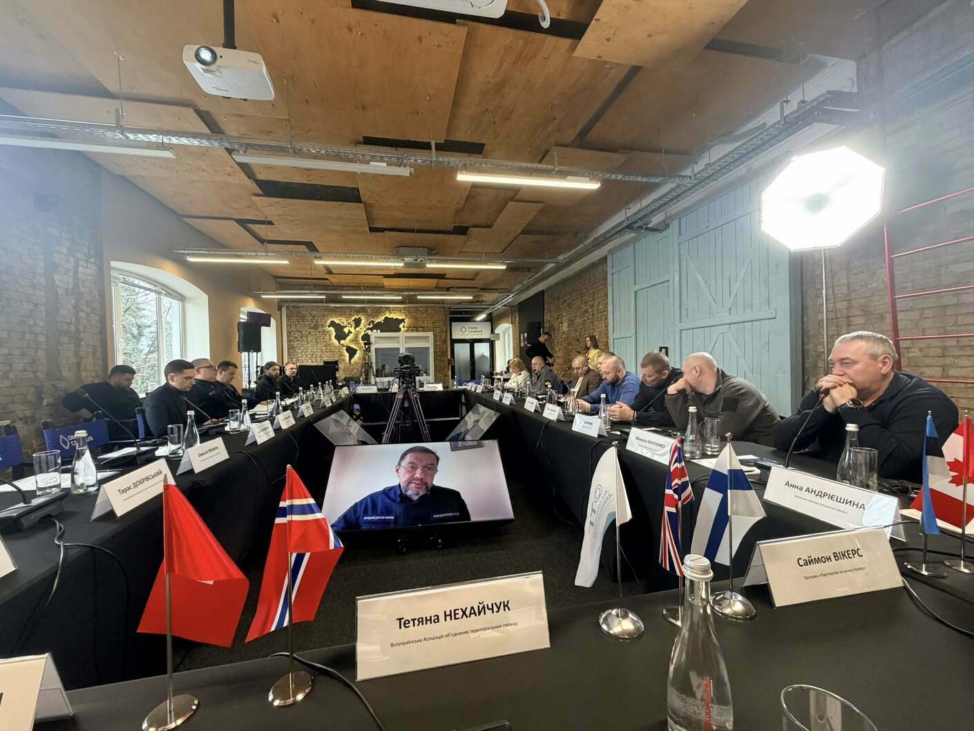 «Для мене особиста честь – мати можливість підтримувати вас у будь-який спосіб», – зазначив він, нагадавши, що працює в Програмі з 2022 року, а перший візит до Києва в рамках її запуску відбувся ще в листопаді 2021-го. Пан Вікерс підкреслив, що під час круглого столу будуть обговорені ключові аспекти кризового реагування на рівні громад – від післяподієвої координації та евакуації до енергостійкості, комунікацій і збереження культурної спадщини, – і висловив сподівання на предметний обмін досвідом про те, як громади адаптувалися в надзвичайно складних умовах. Він також подякував Всеукраїнській Асоціації ОТГ за реалізацію проєкту та організацію заходу. Вікерс зазначив, що Програма «Партнерство за сильну Україну», яку фінансують уряди Канади, Естонії, Фінляндії, Норвегії, Швеції, Швейцарії та Великої Британії, підтримує широкий спектр ініціатив, спрямованих на зміцнення стійкості України перед обличчям російської агресії – у партнерстві з місцевими громадами, урядом, громадянським суспільством та приватним сектором.