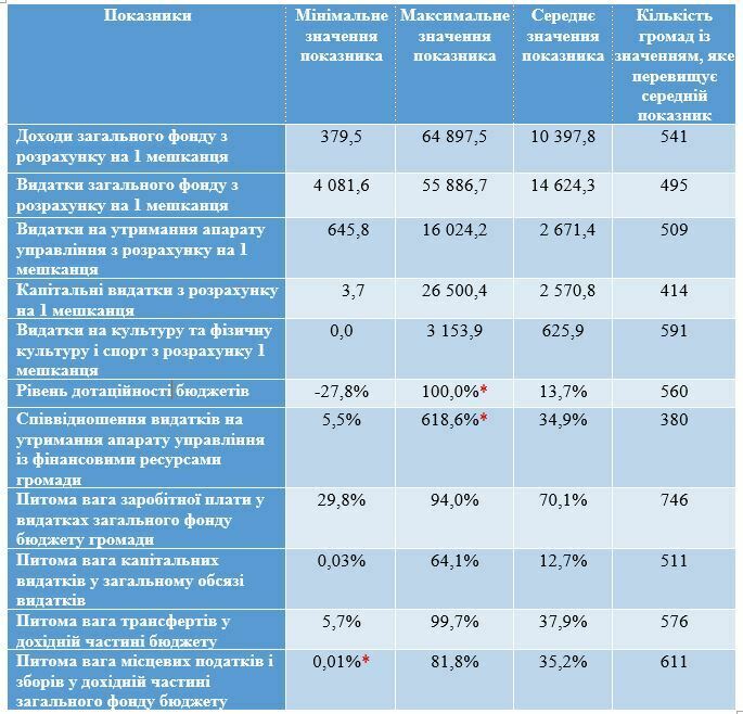 * !!! Під час розгляду та аналізу показників слід зважати на особливості функціонування територіальних громад у прифронтових регіонах та тих, території яких перебувають під тимчасовою окупацією. Ці чинники зумовлюють суттєві відхилення показників таких громад стосовно середніх величин і не завжди можуть відображати реальний стан з огляду на особливості фінансування та функціонування таких територій. Слід враховувати функціональну типологію територій, вплив воєнних дій та механізми державної підтримки таких територіальних громад.