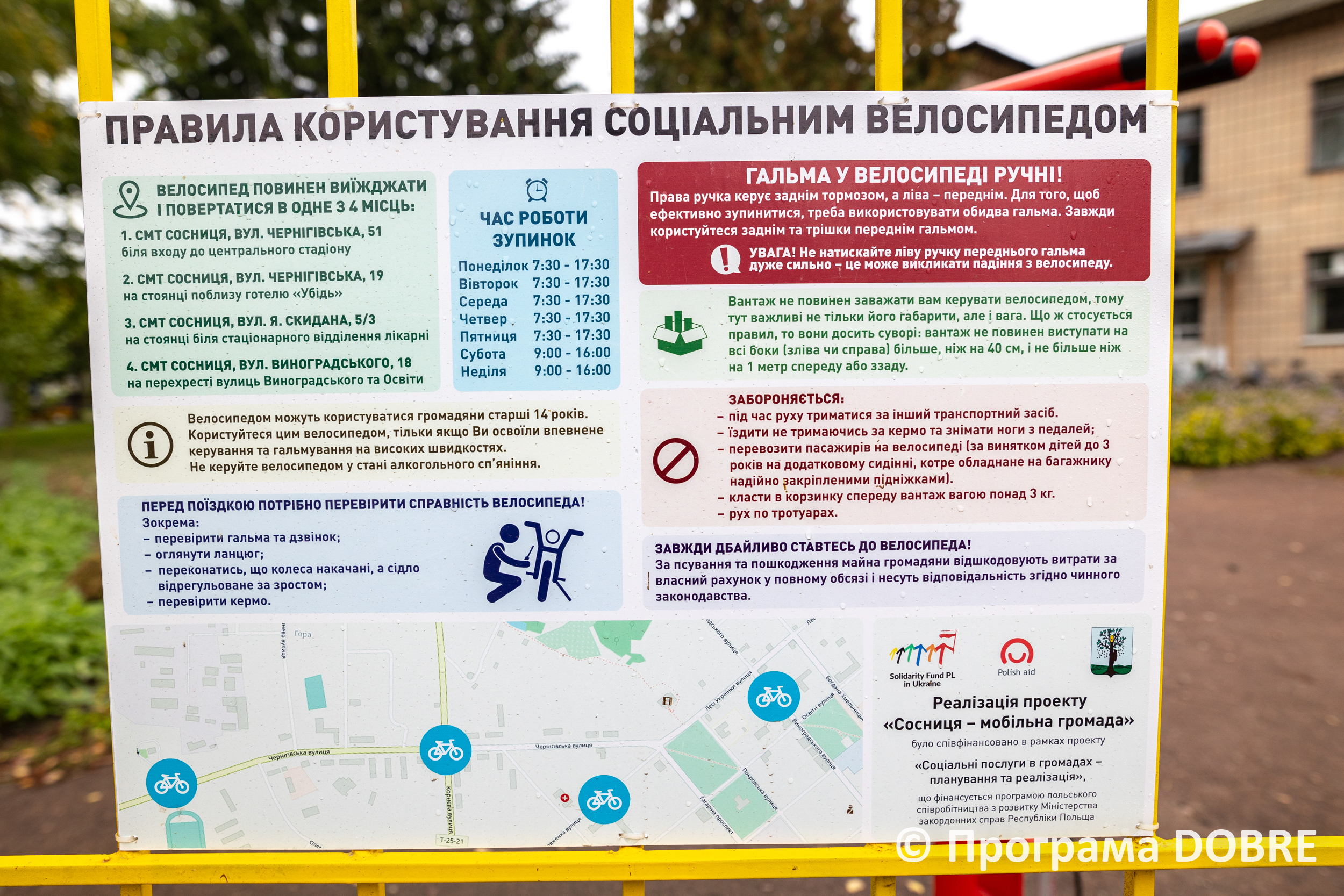 Проєкт «Соціальний велосипед», Сосницька територіальна громада