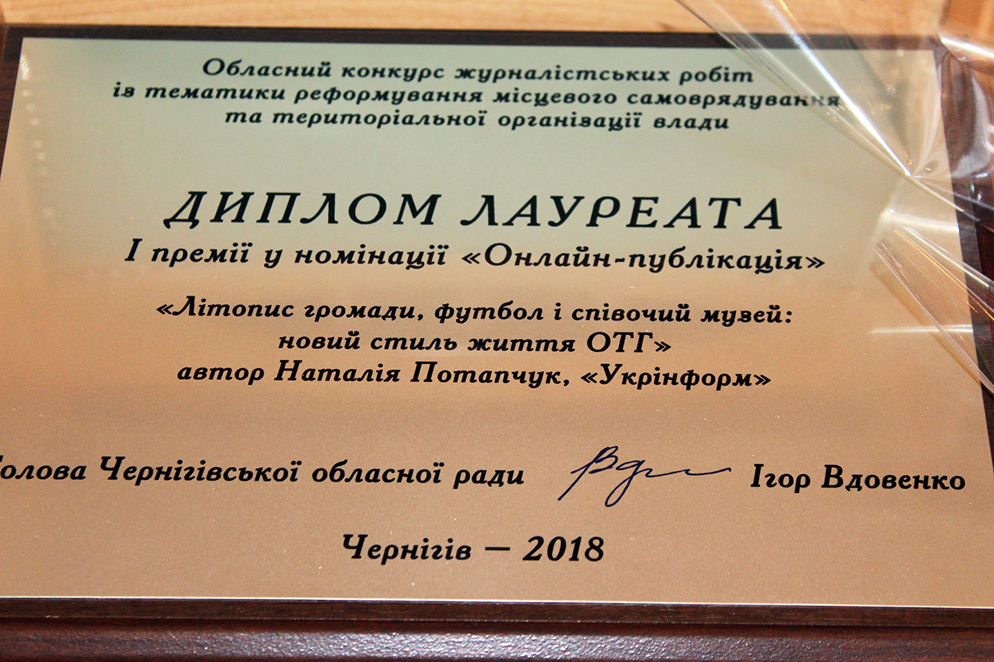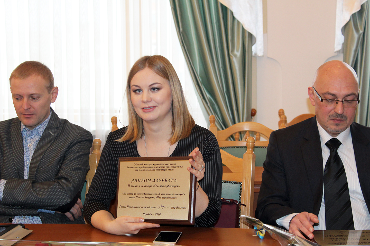 The award ceremony for the representatives of the media community in Chernihiv oblast whose contributions had been selected by the jury took place on December 7, on the Local Self-Government Day, at the oblast council. The winners received money awards and certificates.
