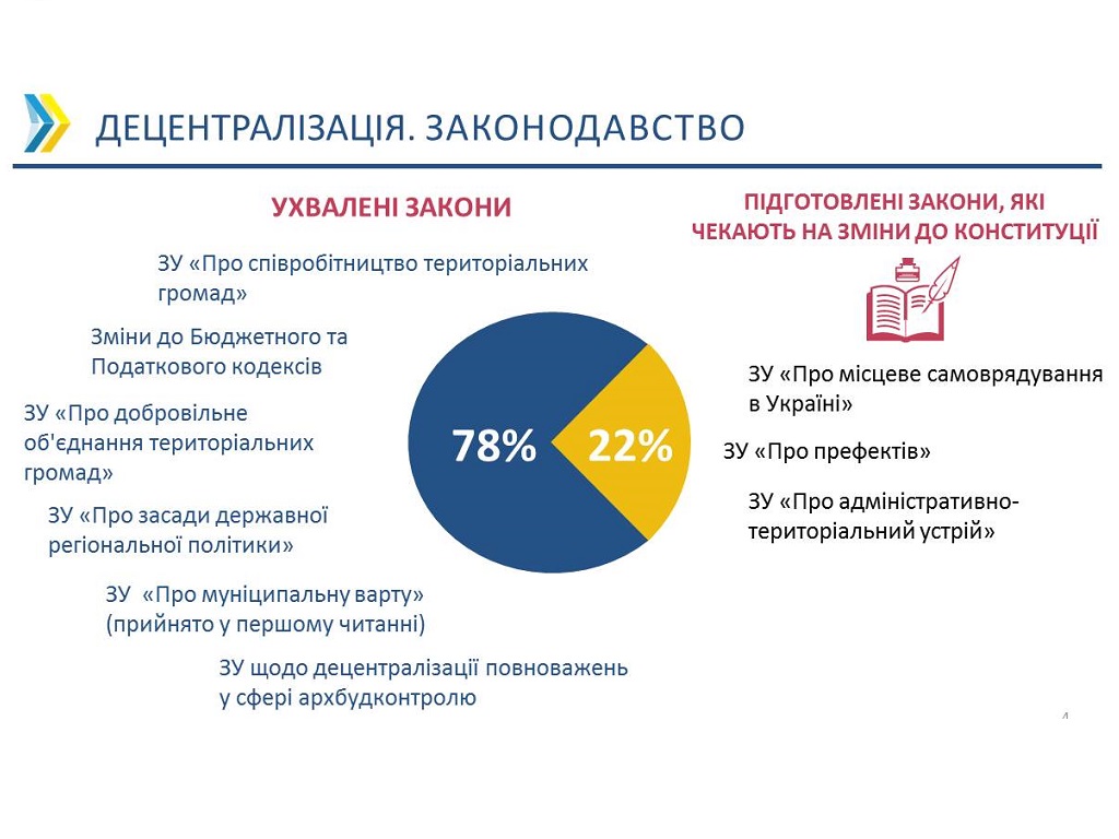 Децентралізація – єдиний спосіб для України відбутися як спроможна, незалежна держава. Про це заявив Віце-прем'єр-міністр - міністр регіонального розвитку, будівництва та житлово-комунального господарства України Геннадій Зубко під час публічного звіту щодо виконання Програми діяльності Уряду.