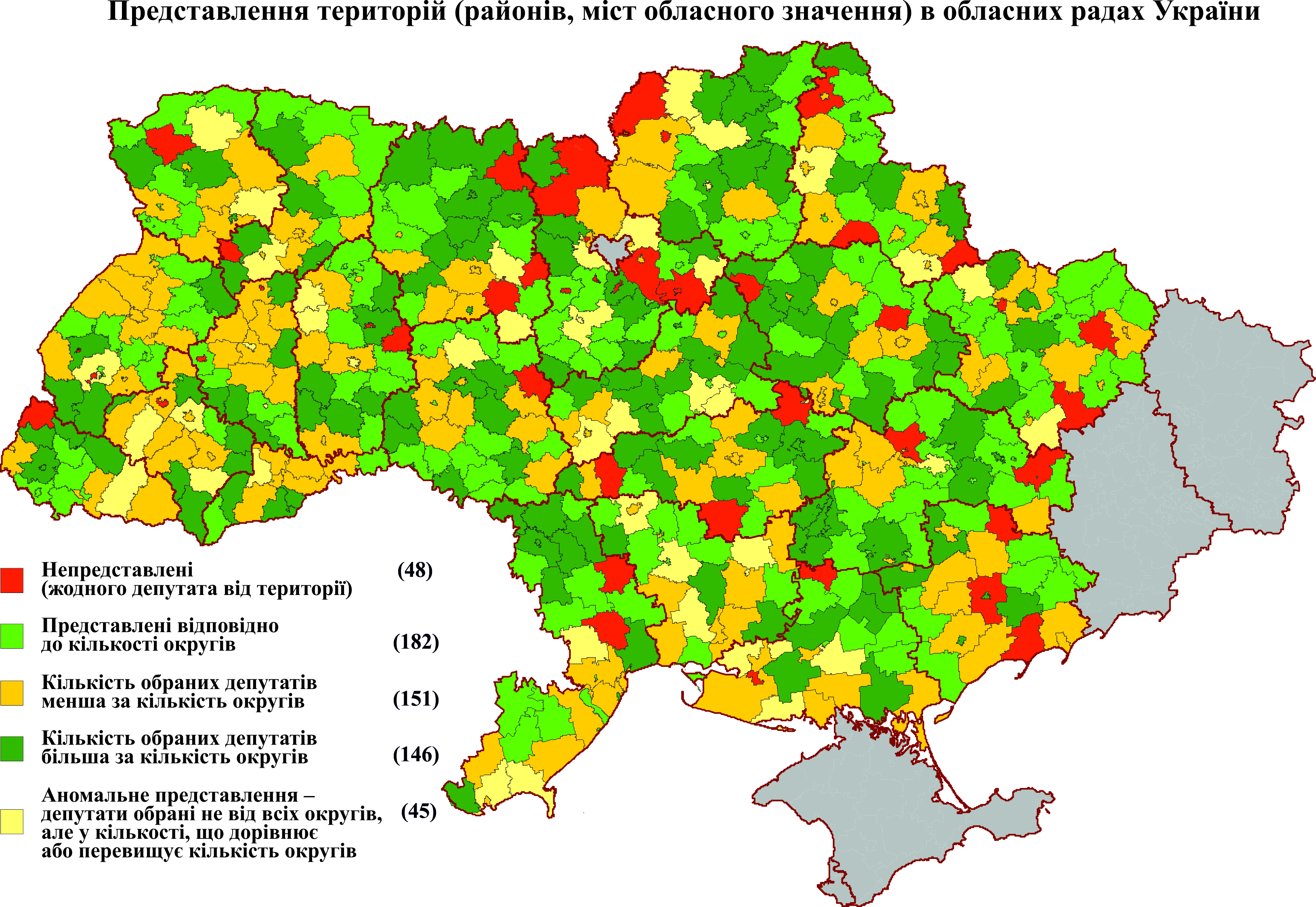 According to him, due to the specifics of the electoral system, after the local elections in 2015, in most oblast and rayon councils, the constituencies are represented unevenly or unrepresented at all.