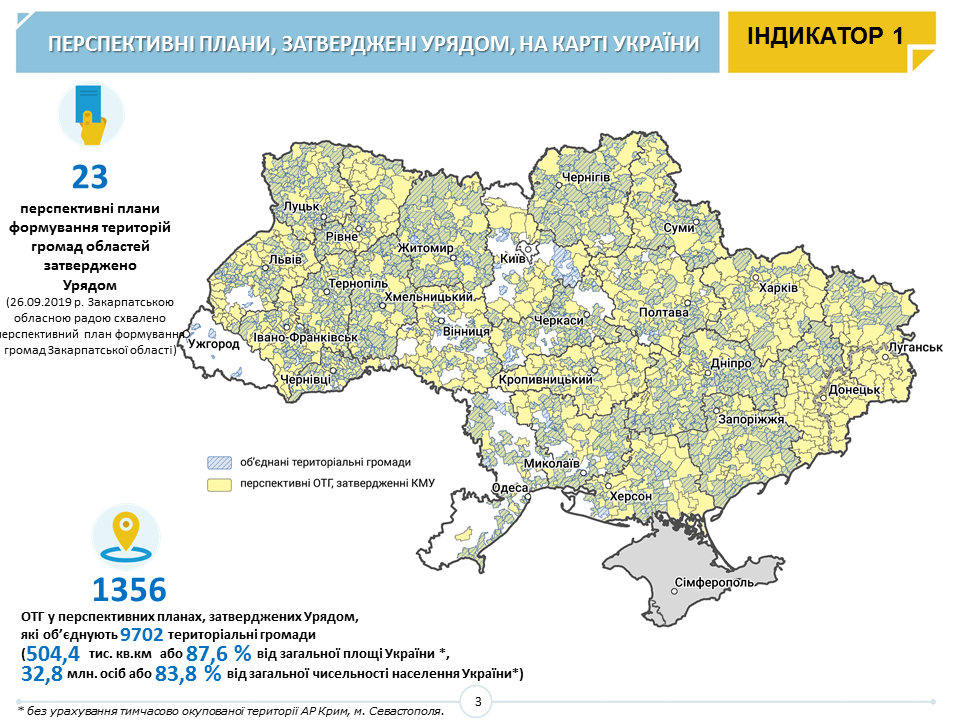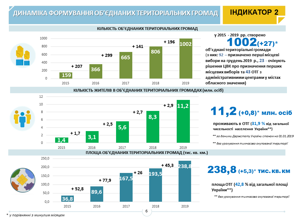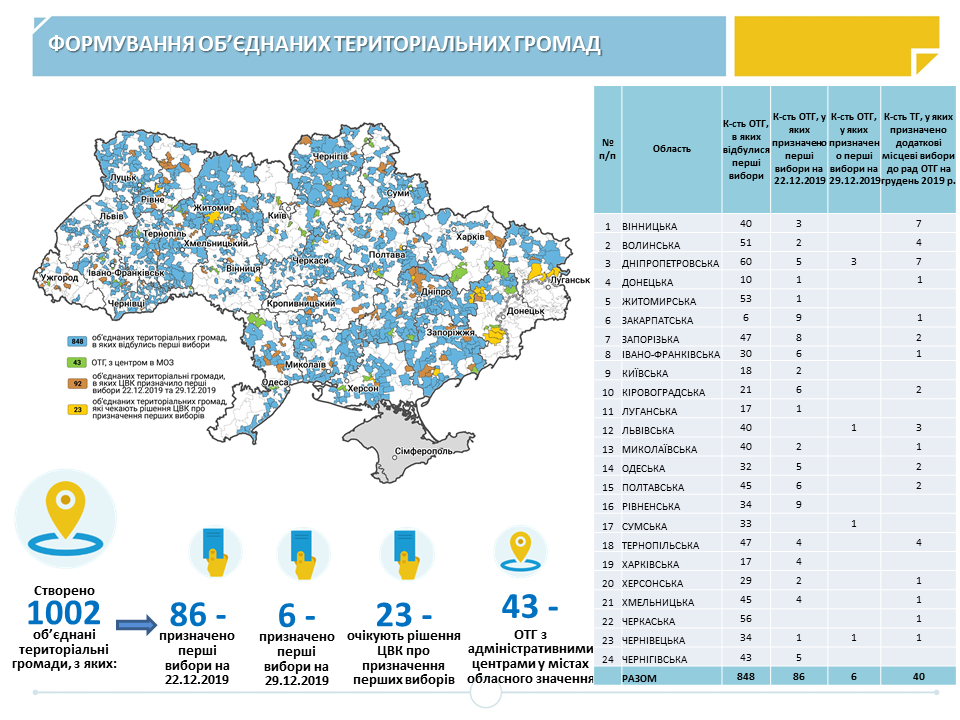 1002 amalgamated hromadas (AHs) with a population of more than 11 million people were formed in Ukraine as of 10 November, reports MinRegion, citing the monthly monitoring of the decentralisation process and local self-government reform. (DOWNLOAD).