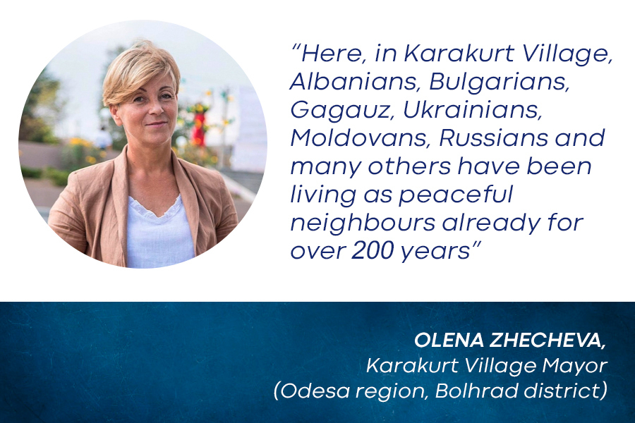 “We were cautious about “decentralisation” as such. Some of the local politicians perceived the idea of municipal amalgamation in a negative way. They said this would lead to the closures of schools, health care facilities and cultural institutions. Villages would be deprived of centralised funding. It was often repeated that it would be impossible to amalgamate villages with residents of various national backgrounds. Although, here, in Karakurt Village, Albanians, Bulgarians, Gagauz, Ukrainians, Moldovans, Russians and many others have been living as peaceful neighbours already for over 200 years. Being a mayor for 14 years I have never seen a conflict on ethnic grounds in the community.” (Olena Zhecheva, Karakurt Village Mayor).