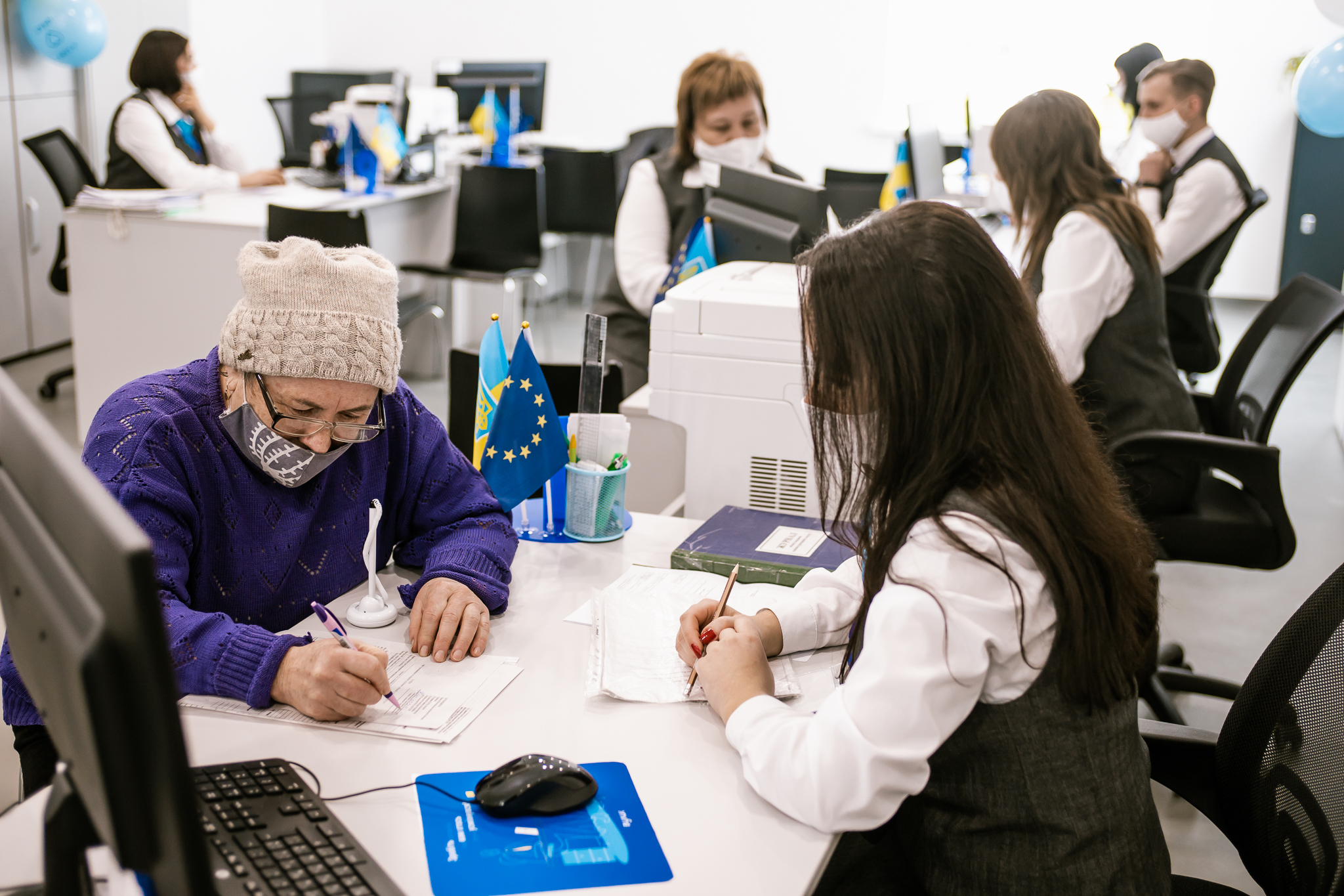 The programme also supplied the ASC with furniture, equipment, software and an electronic queue management system, and provided institutional support in creating a remote workplace in Uspenka village. The ASC’s personnel passed educational trainings developed by the programme’s experts.
