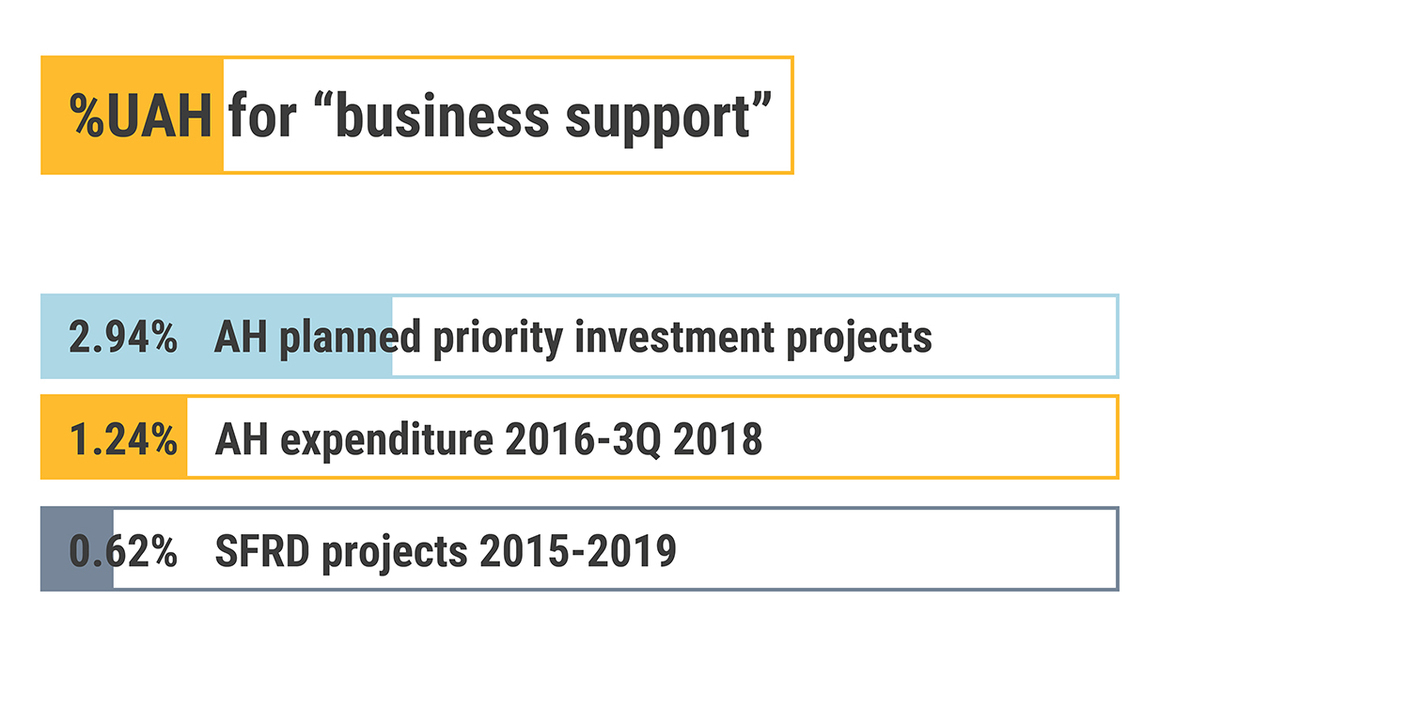 [25] For example, the median value of AH planned priority projects is UAH 4 million, with 25% above UAH 10 million. The same figures for projects financed under the SFRD between 2015 and 2019 are UAH 1.44 million and 12%.