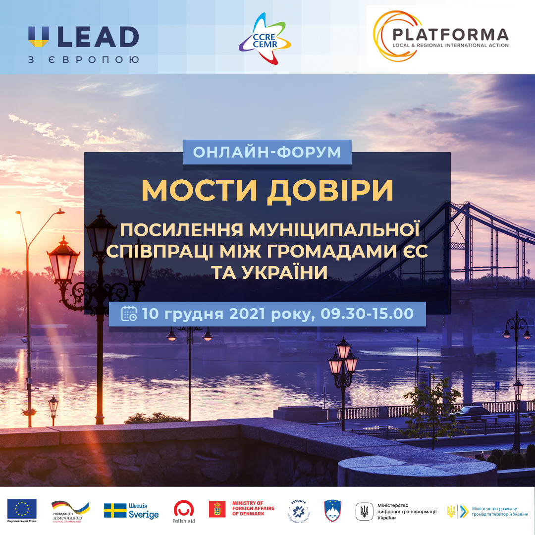 From 9:30 A.M. till 3P.M. on December, 10, join discussion about municipal cooperation between Ukraine and the EU. The forum will be held online.
