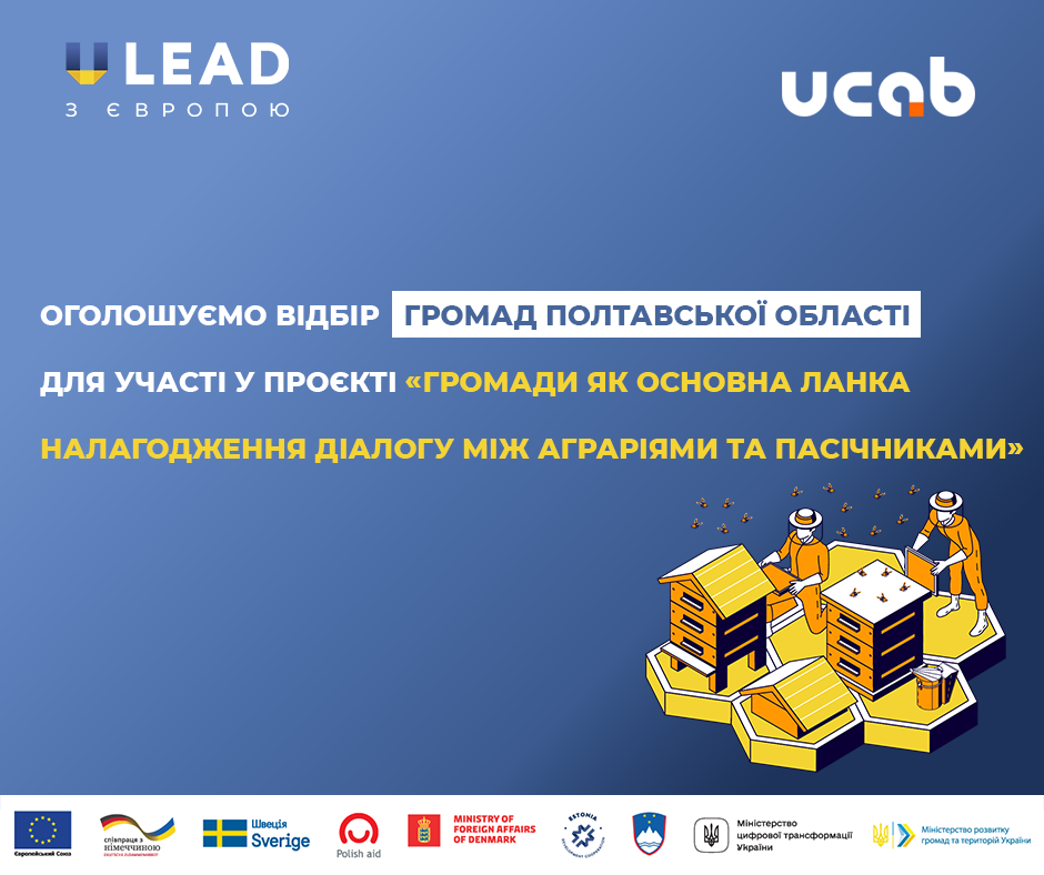 Municipalities of the Poltava oblast are welcome to participate in the project «Municipalities as the essential element of arranging a dialogue between agrarians and bee-masters», introduced by the public organisation «Association of the Agrarian business Ukrainian club» with support of the U-LEAD with Europe Programme.