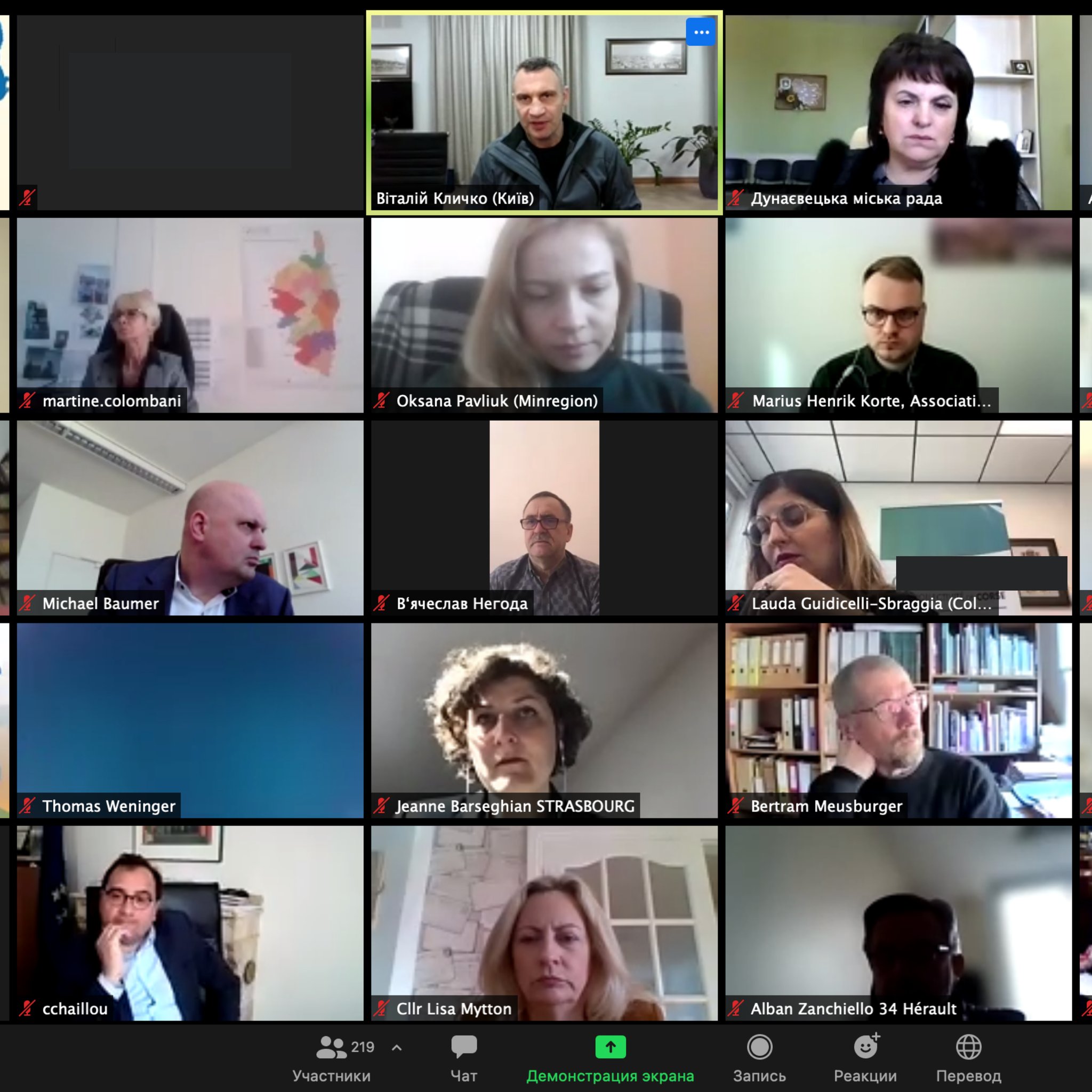 On March 22, mayors from Ukraine, Austria, France, Germany, Switzerland, Ireland, United Kingdom (more than 200 participants) discussed specific ways and means to help Ukrainians, to stop killings of civilians by the Russian army, total destruction of Ukrainian cities and villages, and to prevent Putin from moving further into Europe.