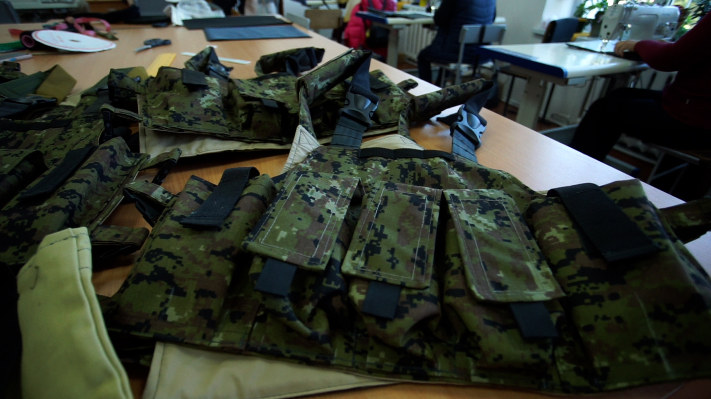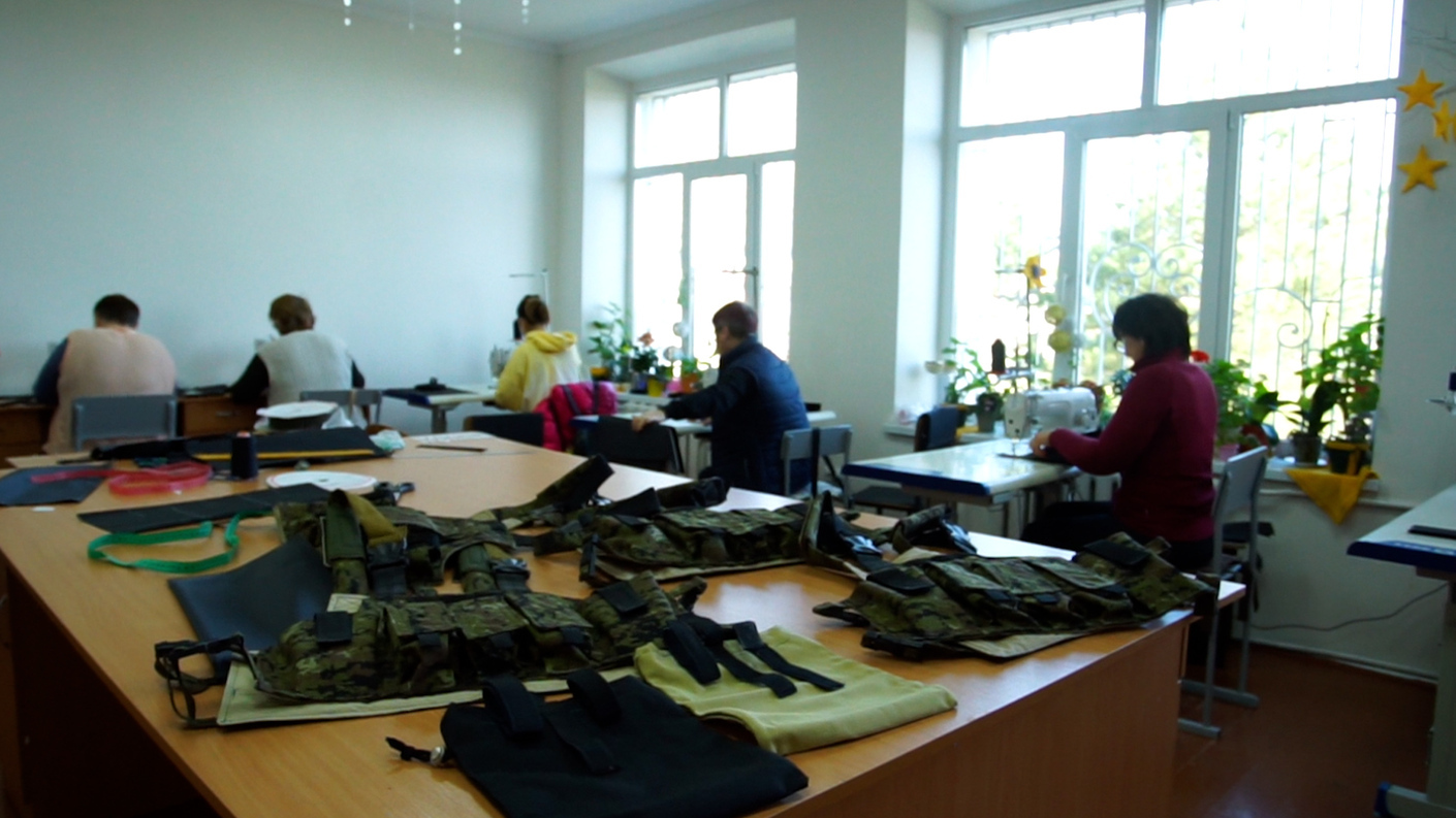 Since early days of war, the demand for load bearing vests has been high, Mykhailo Maliborskyi said. In early March, Verkhnyanska hromada set up a sewing workshop to produce vests for the Ukrainian troops.