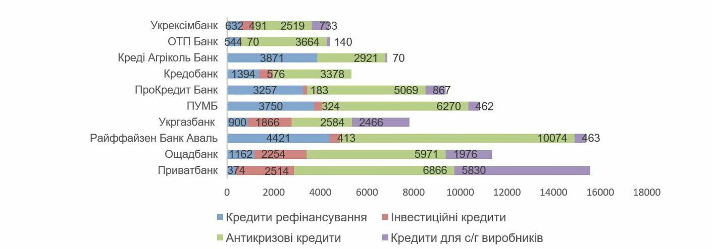 • 25,35 млрд грн були видані в якості рефінансування попередньо отриманих кредитів;