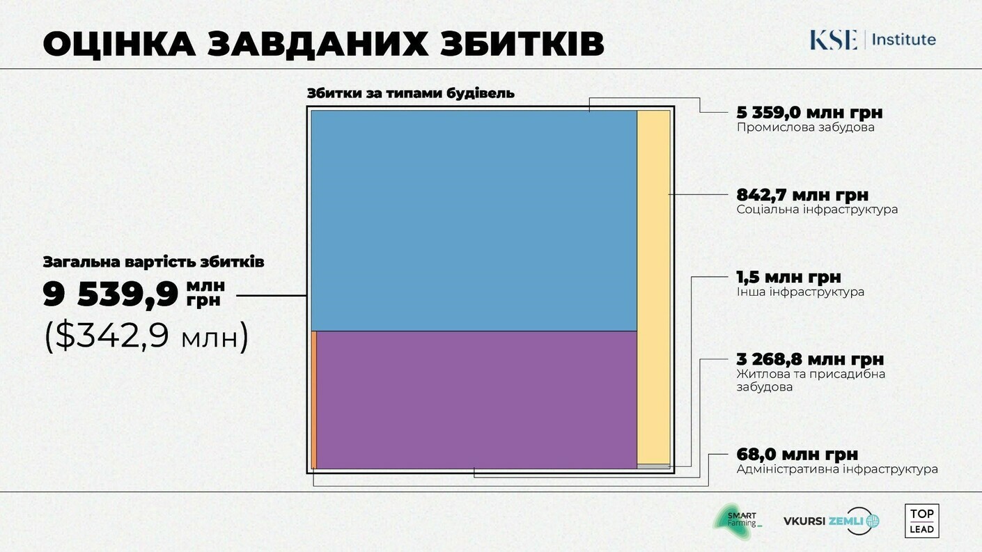 Сума, завданих росіянами збитків у місті, що захищало українську «Мрію», складає 9,5 млрд грн, згідно з оцінкою KSE в межах проекту RebuildUA.