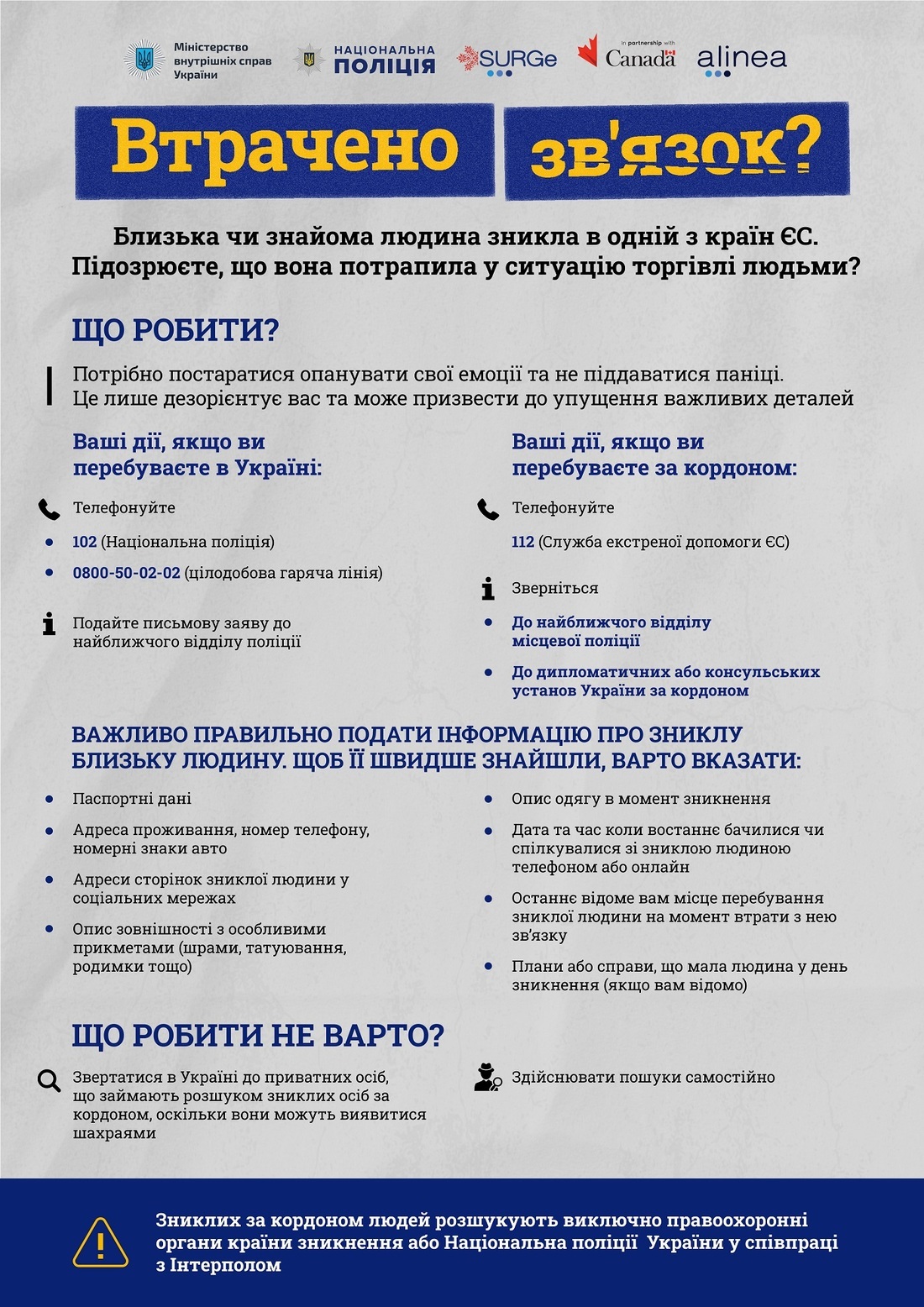 Зникнення людей – ще одна трагічна сторінка часів війни та великих переміщень. Це може траплятися як в Україні, так і за кордоном. Зокрема, зникнення можуть бути пов’язані з торгівлею людьми.