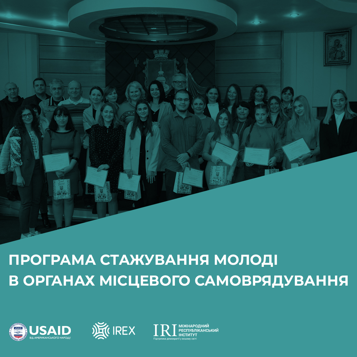 Програма реалізовувалася за підтримки Міжнародного республіканського інституту і передбачала двомісячне стажування в одному із структурних підрозділів органу місцевого стажування та проходження онлайн-тренінгів. Мета програми - популяризувати державну службу серед молоді та залучити молоді таланти до місцевих органів самоврядування. МРІ планує випустити посібник, який стане покроковою інструкцією для органів місцевого самоврядування у впровадженні програми стажування молоді.