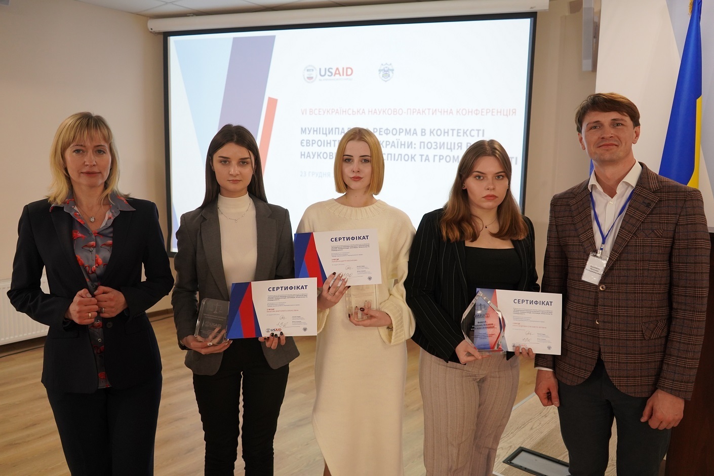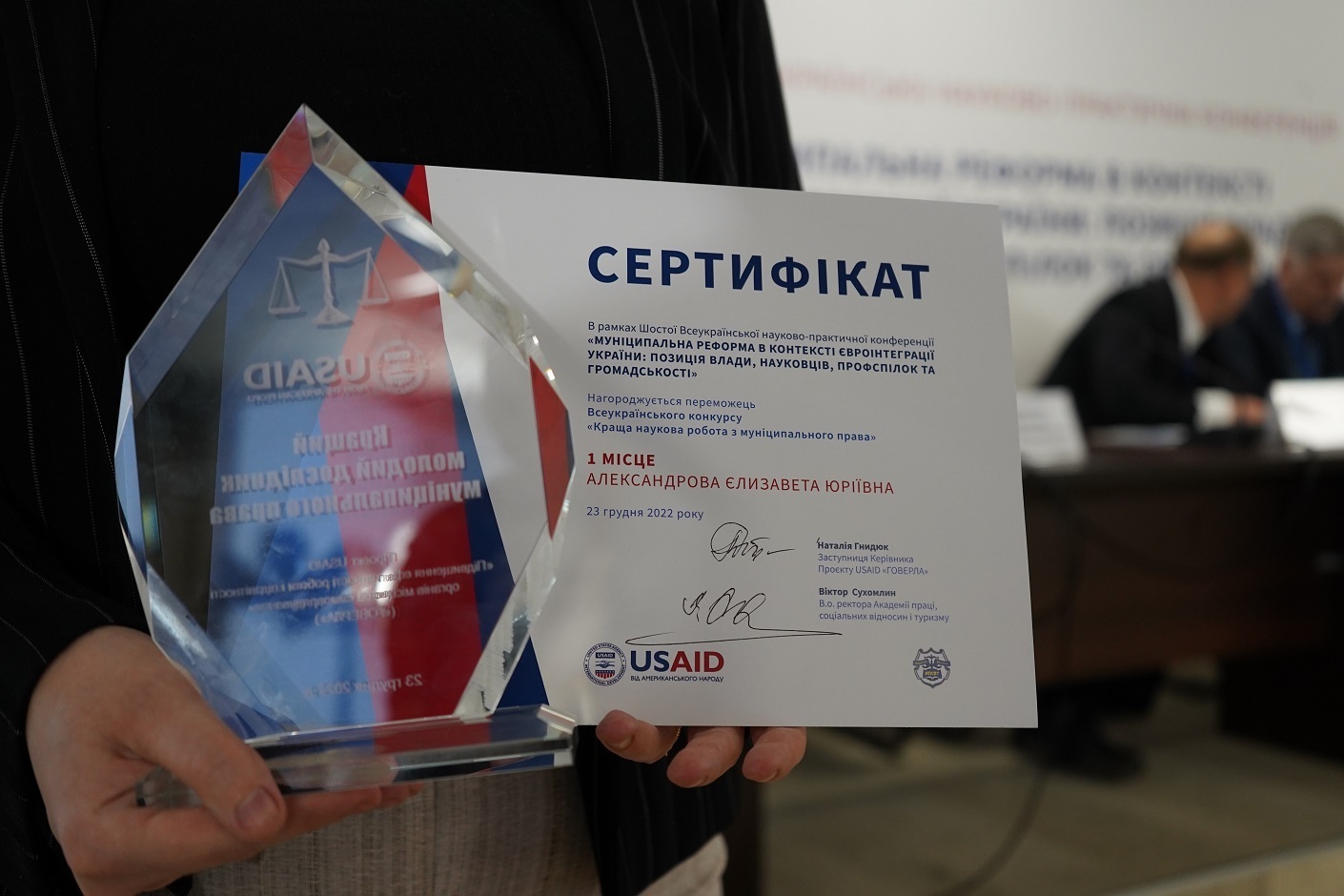 Також під час конференції були оголошені результати та нагороджені переможці конкурсу праць молодих вчених-юристів з проблематики сучасного стану законодавства України у сфері муніципального права. Цього року вперше основою тематичних напрямків досліджень молодих вчених стали результати опитування керівників територіальних громад щодо актуальних проблем місцевого самоврядування, яке було проведено напередодні конкурсу