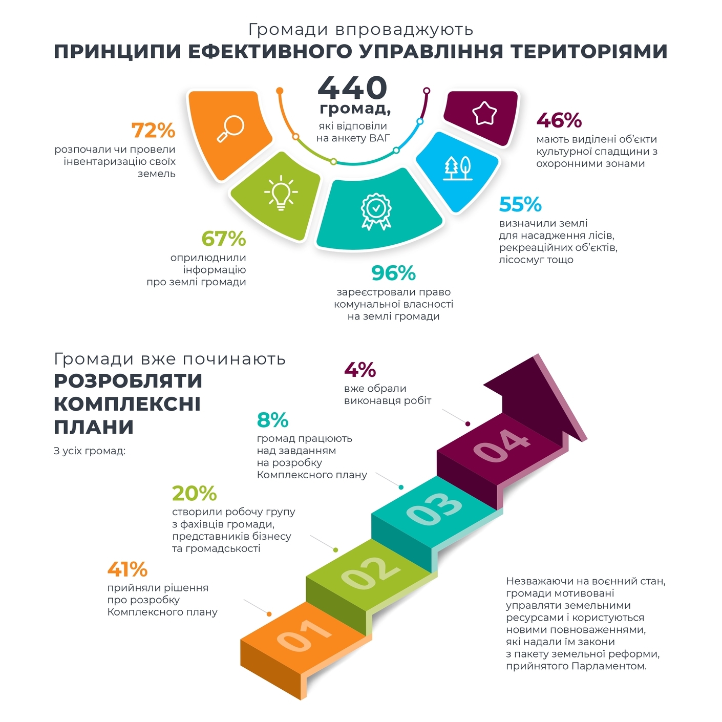 Всеукраїнська асоціація громад надіслала своїм членам інформаційний запит щодо стану розвитку просторового планування територій. На нього відповіли 440 громад, що складає близько 30% усіх громад України.