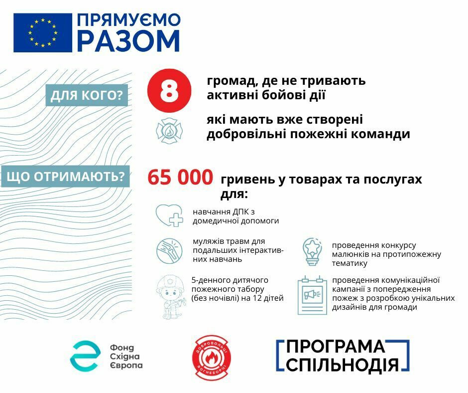 У межах проєкту буде відібрано 8 громад, де не проводяться активні бойові дії, і в яких уже створені та функціонують добровільні пожежні команди.