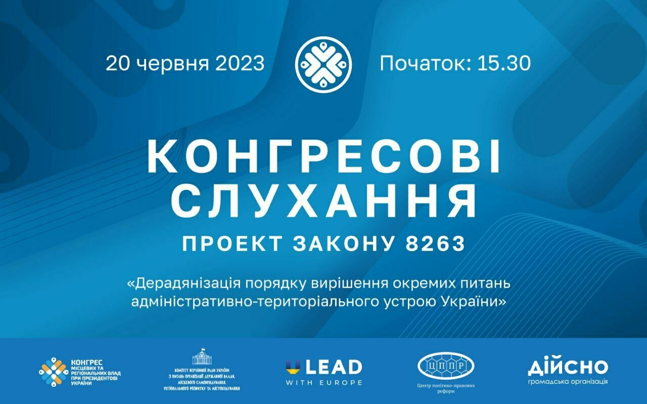 20 червня о 15:30 розпочнуться Конгресові слухання проекту Закону «Про дерадянізацію порядку вирішення окремих питань адміністративно-територіального устрою України» (№8263).