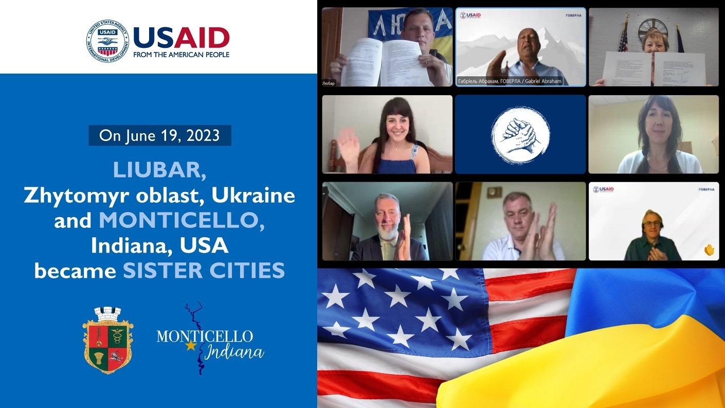 On July 19, the Ukrainian city of Liubar, Zhytomyr Oblast, and the American city of Monticello, Indiana, opened a new chapter in cooperation by signing a Sister City Agreement. USAID HOVERLA Activity supported communities in establishment of partnership.