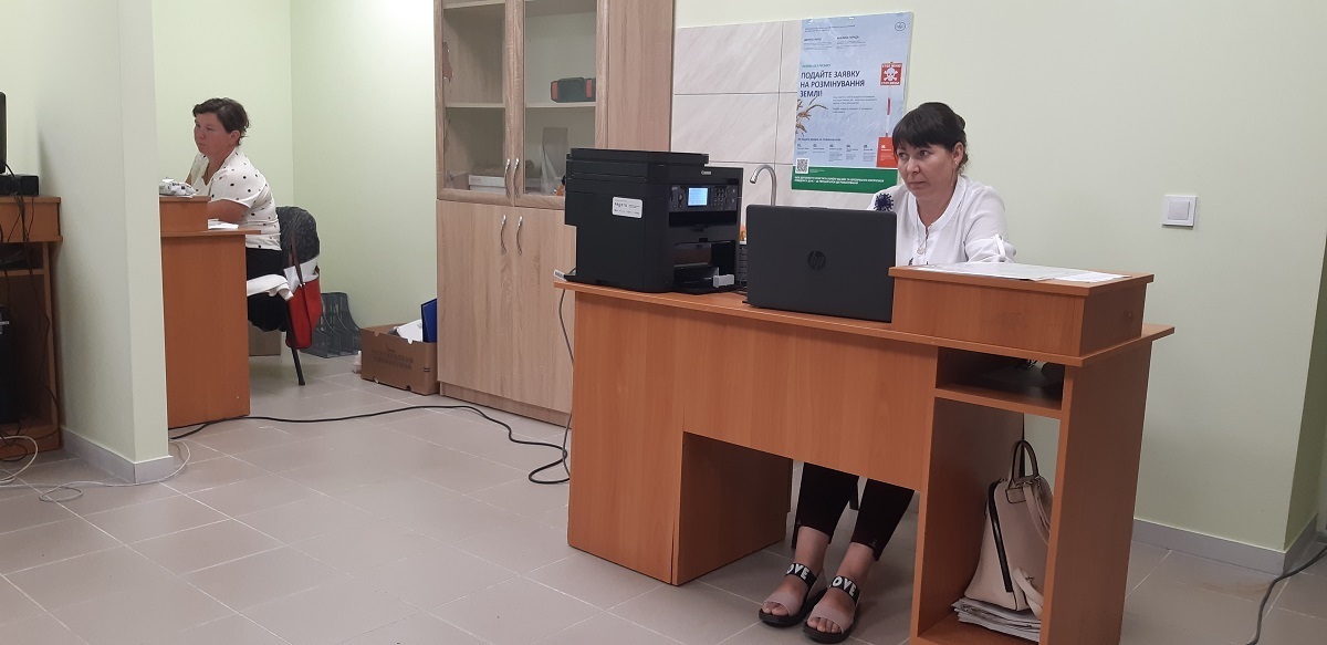 Тимчасове розміщення ЦНАП в іншій вцілілій будівлі. В громаді планується будівництво модульного ЦНАП за кошти міжнародної технічної допомоги. Проєкт до вже наданої комп’ютерної техніки передає громаді автомобіль «мобільний ЦНАП»