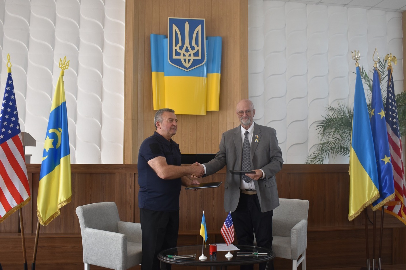 The municipality of Dubno, Rivne oblast, entered into a Partnership Agreement with the city of Oxford, Ohio, US. The document was signed by Vasyl Antoniuk, Mayor of Dubno, and William Snavely, Mayor of Oxford.