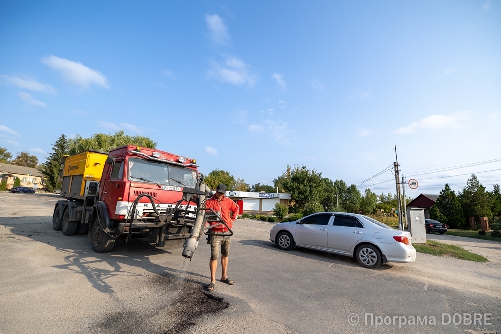 Актуальна проблема для Компаніївської громади – стан доріг. Саме жителі шляхом опитування визначили пріоритетною послугу з їх утримання та ремонту. Програма USAID DOBRE передала сучасне, комп’ютеризоване обладнання для виконання ямкового ремонту доріг струменево-ін'єкційним методом. І з початку весни з його допомогою триває відновлення дорожнього покриття.