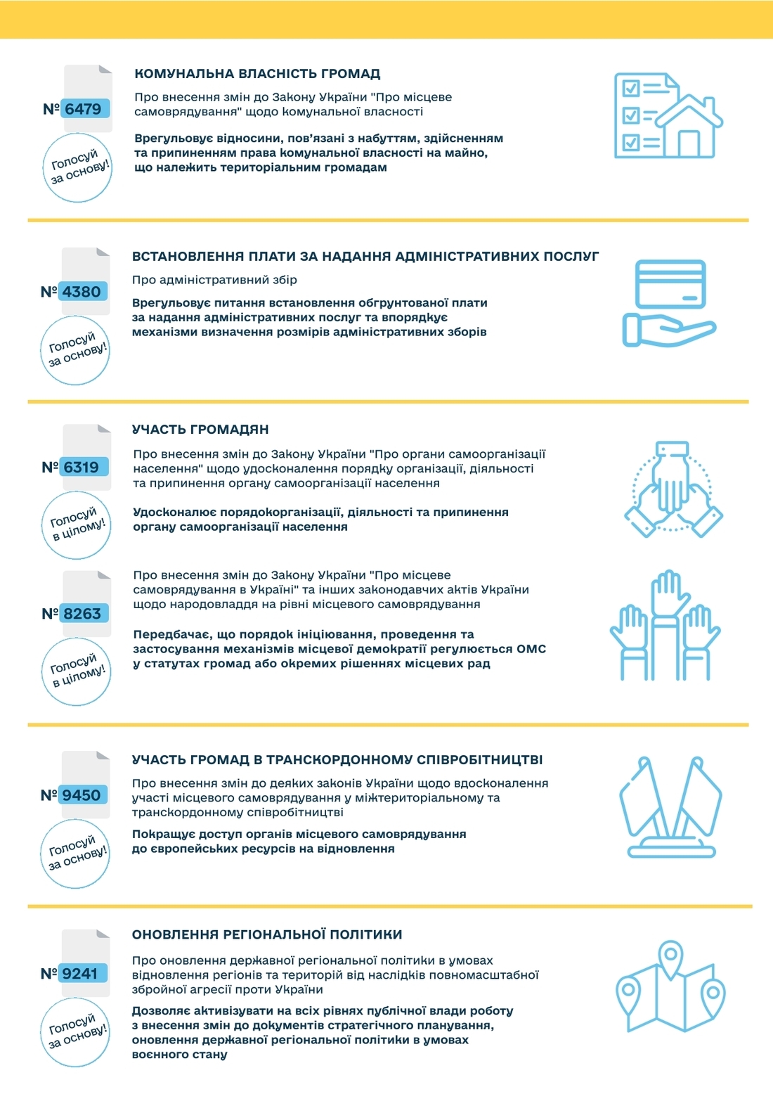 Більше актуальних для громад законопроектів – у нашій інфографіці (див. нижче).