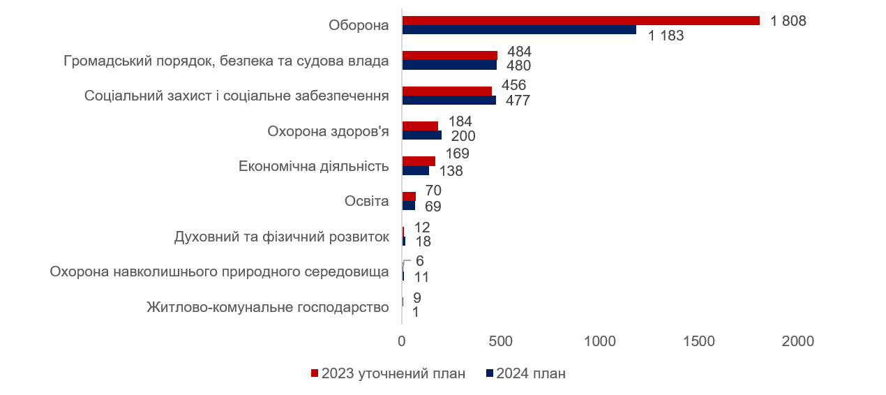 Загальна сума запланованих видатків на 2024 рік становить 3 309,0 млрд гривень. Існує велика ймовірність щодо їх перегляду задля швидкого реагування на нагальні та термінові виклики в країні.
