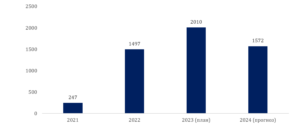 Рис. 6. Дефіцит державного бюджету у 2021-2024 роках, млрд грн