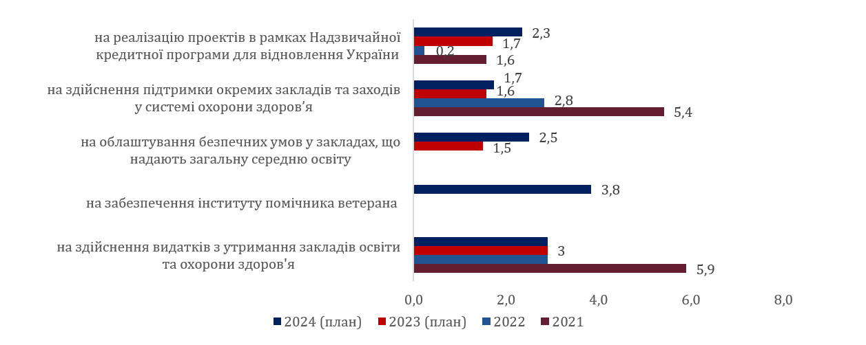 · реалізацію проєктів у рамках Надзвичайної кредитної програми для відновлення України – 2,3 млрд грн;