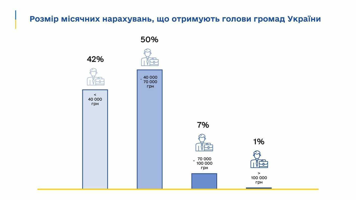 Він повідомив, що, виходячи з отриманих даних, в країні усього сім голів громад, які минулого року заробляли більше 100 тисяч гривень на місяць: