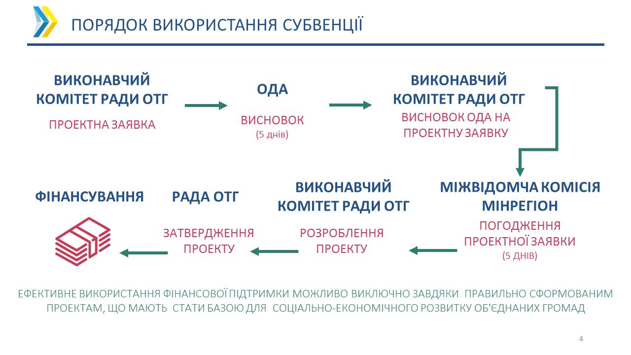 Фінансування проектів за рахунок цієї субвенції відбуватиметься згідно з планом соціально-економічного розвитку об’єднаної територіальної громади.
