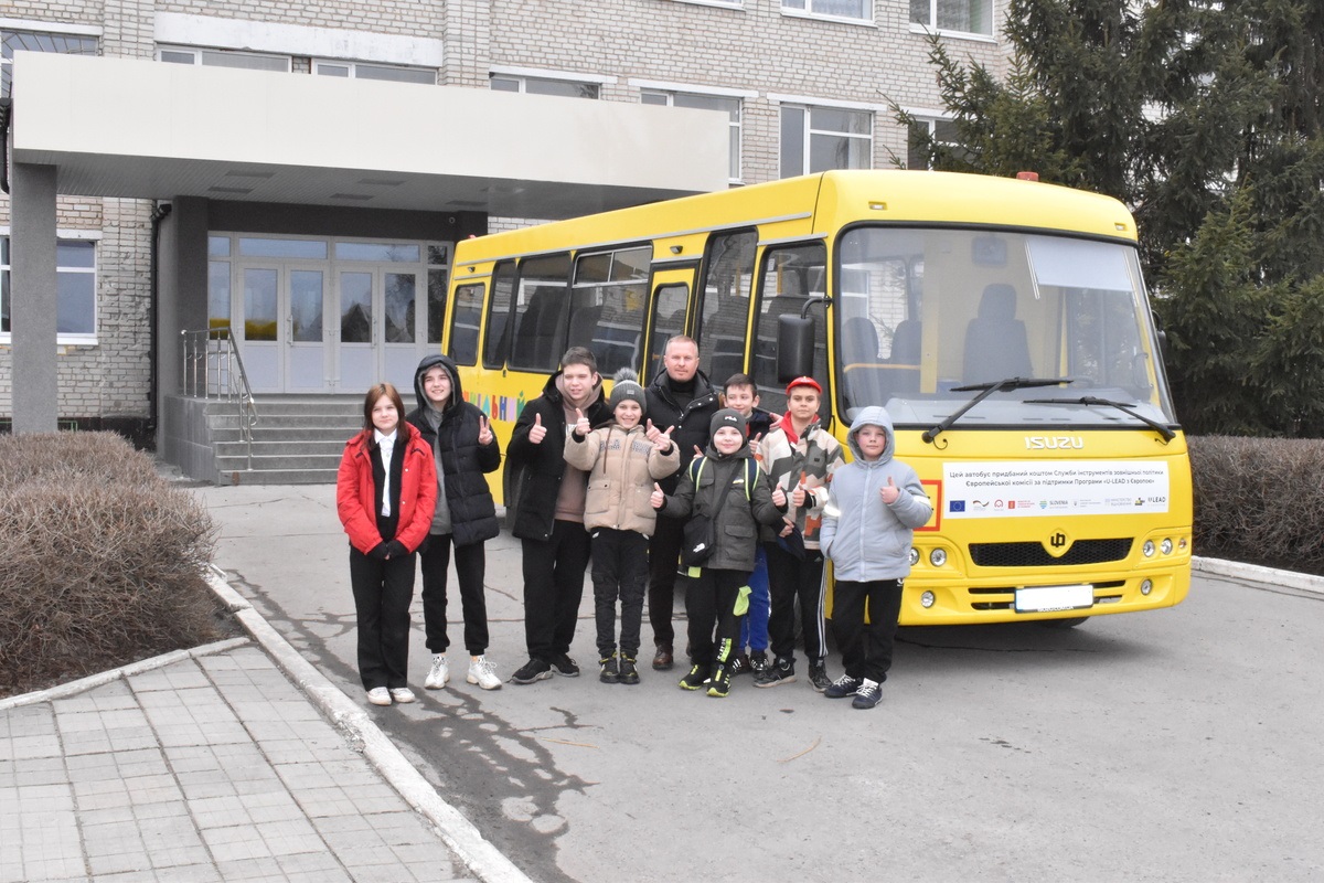 Підтримка громад у створенні комфортних та безпечних умов для відновлення шкільного навчання у очному форматі – одна з цілей ініціативи «Відновлення місцевих шкіл задля стійкості», що впроваджується U-LEAD за фінансової підтримки Служби зовнішньополітичних інструментів Європейської Комісії. Однією з складових ініціативи було придбання шкільних автобусів для громад, чиї школи були відновлені в рамках ініціативи (мова про школи, відновлені завдяки співпраці з Фондом "Сміливі" у Київській, Чернігівській, та Харківській областях).