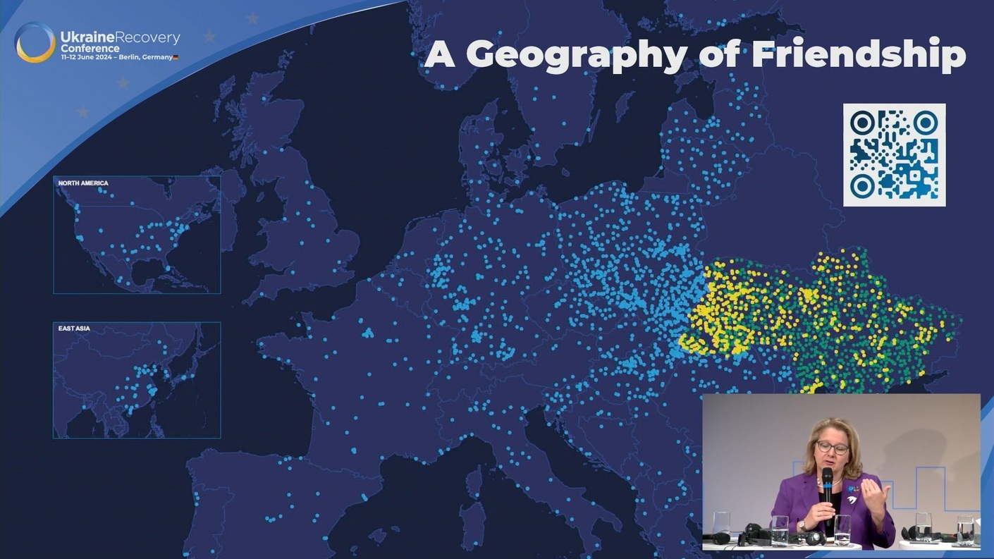12 червня у Берліні під час Конференції з відновлення України 2024 (URC 2024) Міністерка економічного співробітництва та розвитку Німеччини Свенья Шульце висловила сподівання, що до URC2025 кожна українська громада матиме принаймні одне міжнародне муніципальне партнерство для відновлення, і закликала українські громади на європейські муніципалітети до дій.