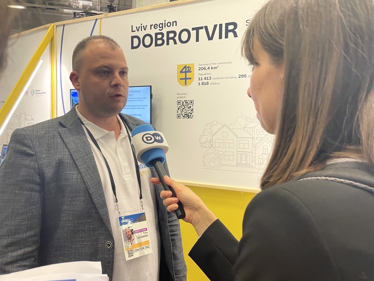 “We sat down with a German Society for International Cooperation (GIZ) representative to discuss the next steps in implementing alternative heating solutions in Dobrotvir. GIZ has committed to financing a feasibility study, which is a direct result of our previous work with this donor and was further galvanized at the URC. We also had productive meetings with representatives of the German Federal Ministry for Economic Cooperation and Development and manufacturers of energy equipment and turbine gas installations. I gave an interview to a leading international media, Deutsche Welle, and discussed our challenges.”