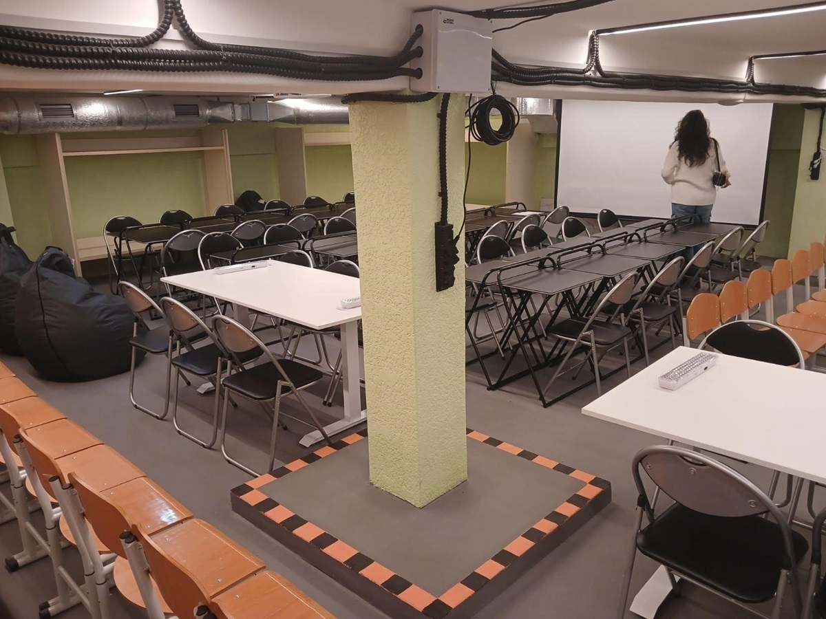Нині тут є велике приміщення-студія, яке має дуже гарне освітлення. Встановлені два екрани, два короткофокусних проєктори. Також є цифровий хаб, у якому розташована мобільна інтерактивна дошка.