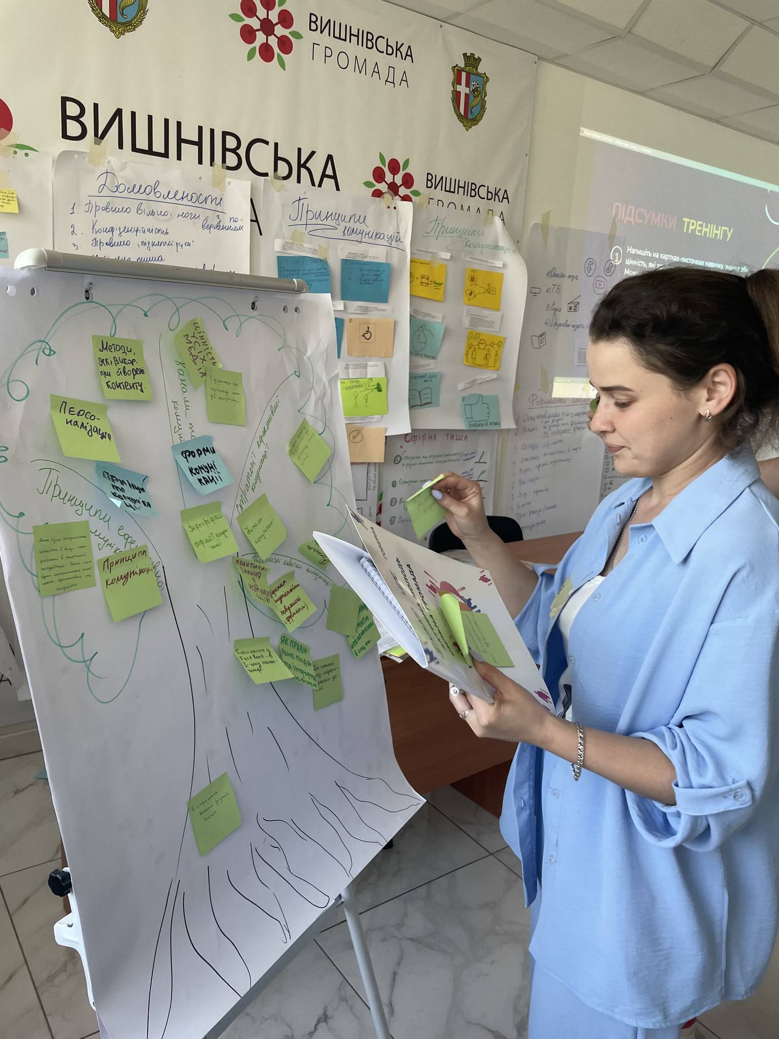 «Під час наших зустрічей ми отримали безліч корисної інформації і позитивних емоцій, а головне – мотивацію, адже все це важливо для підвищення громадської участі у процесах відновлення», — вважає Тетяна Чумаченко, учасниця тренінгу в Розквітівській громаді (Одещина).