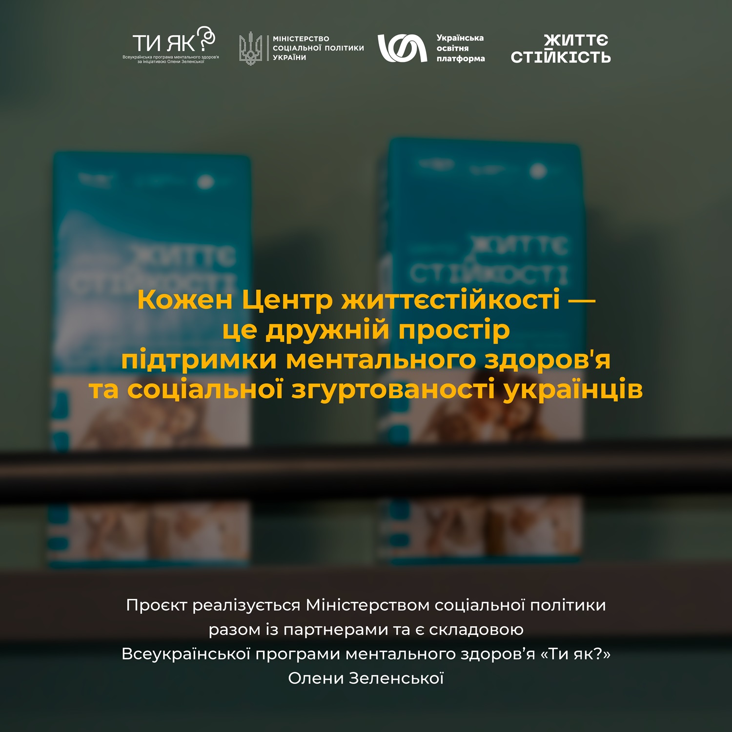 Пілотний проєкт Міністерства соціальної політики реалізується в рамках Всеукраїнської програми ментального здоров’я “Ти як?” Першої леді Олени Зеленської. Його завдання - допомогти кожній людині долати стрес, відновлюватися після кризових подій та, попри усі виклики, залишатися включеним в життя.