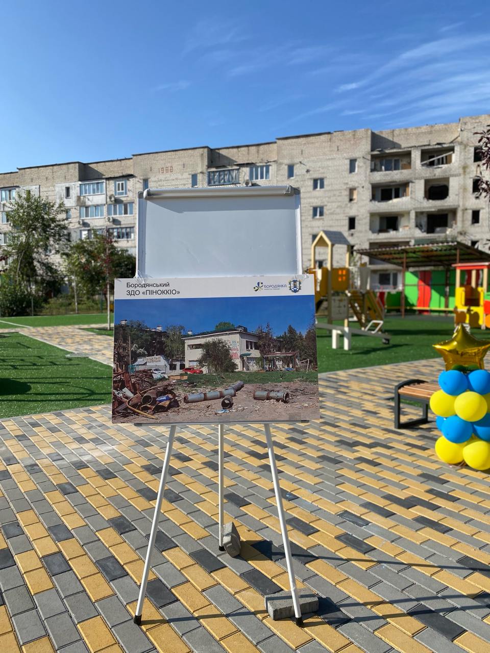 Цей дитсадок — один із трьох дошкільних закладів Бородянки, які зазнали руйнувань унаслідок російської агресії на початку березня 2022 року. Усього з початку повномасштабного вторгнення було пошкоджено або зруйновано понад 3000 шкіл і дитячих садків у всій країні.